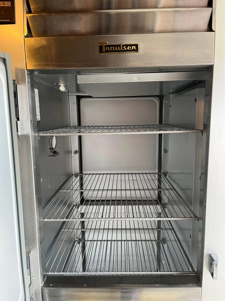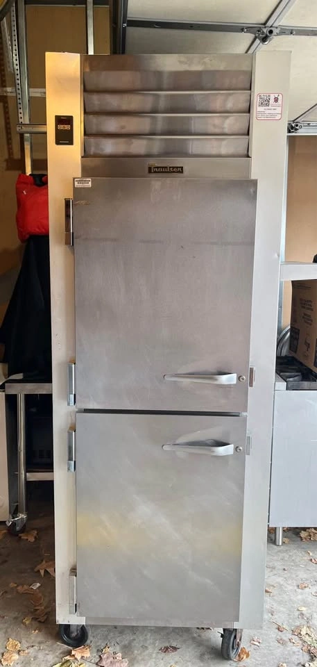 A few bumps and dents on the side. Designer Line Freezer, reach-in, one-section, self-contained refrigeration, stainless steel exterior & interior, shallow depth cabinet, half-height solid doors, cylinder locks, electronic control with digital display, hi-low alarm, 6" stainless steel legs, R290 hydrocarbon retrigerant, 1/2 HP, cETLus, NSF. Runs great!