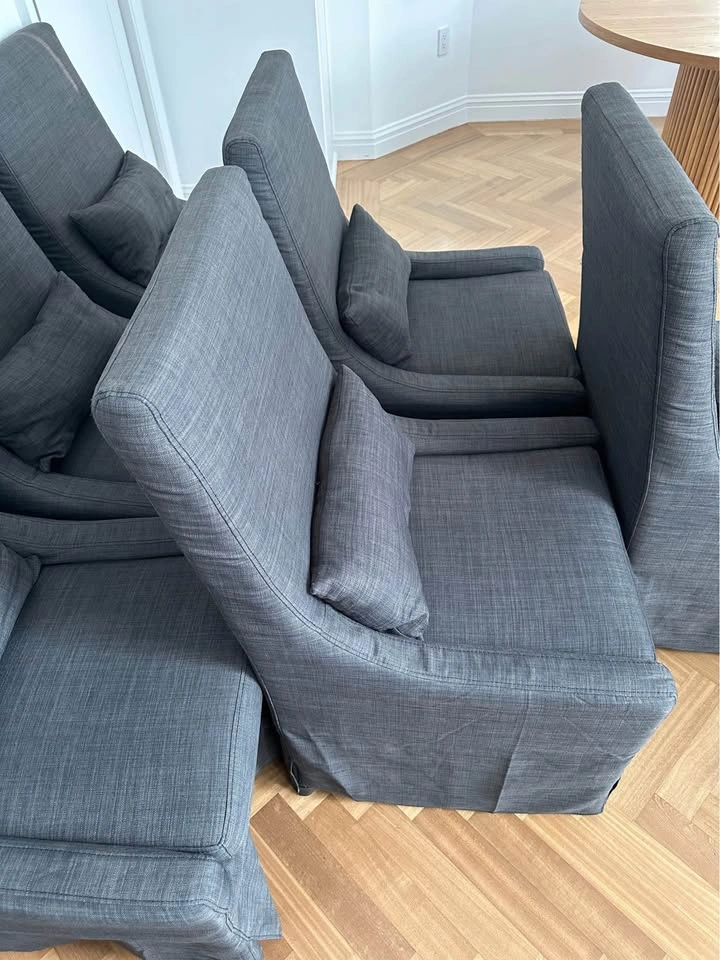 Restoration Hardware Style Gray Dining Chairs Set of 6 In Excellent Used Condition Purchased for $2,500 in January 2025 Measurements Height: 40 in Width: 25 in Depth: 24 in Seat Height: 20 in Seat Depth: 21 in Local Pickup in elevator building in Midtown East, Manhattan
