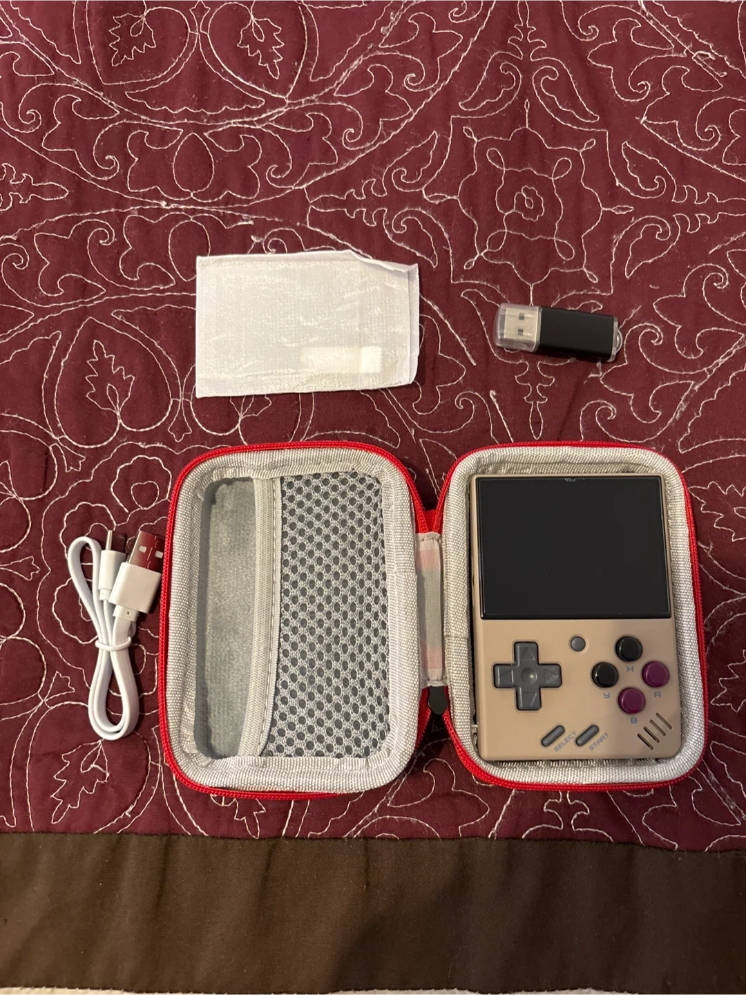Selling a retro handheld game console. It comes with a case, charging cable, and a USB drive. Perfect for some on-the-go gaming! Also comes with an extra screen protector.