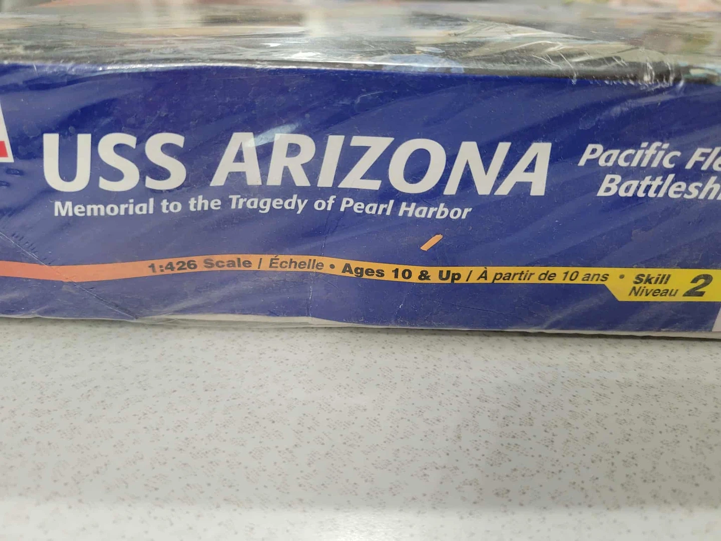 Selling a brand new, sealed Revell USS Arizona Pacific Fleet Battleship model kit! It's a 1:426 scale model, suitable for ages 10 and up. This is a memorial to the tragedy of Pearl Harbor. The model number is 85-0302