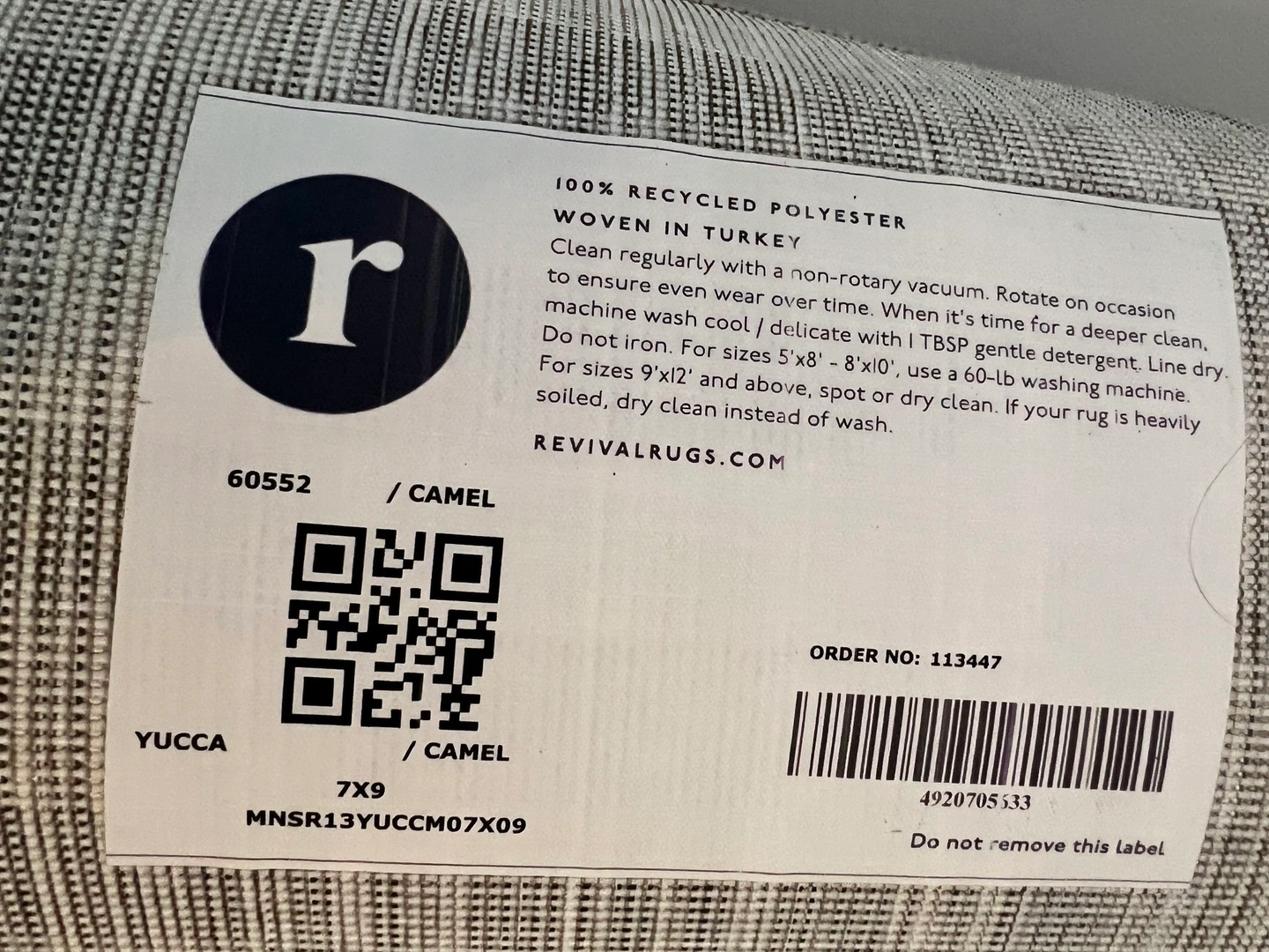 659x7 area rug. Camel color. Revival rugs. Machine washable.