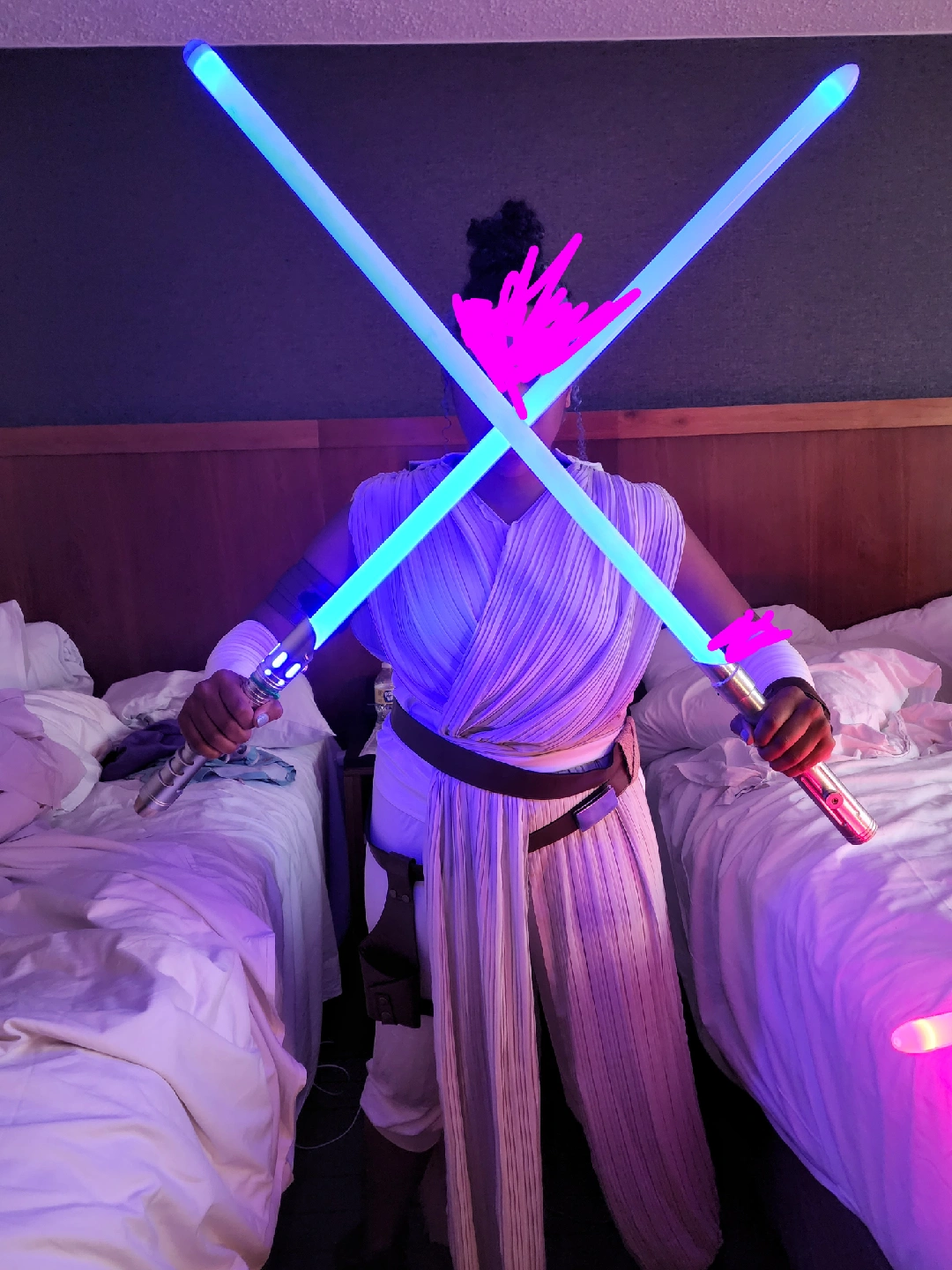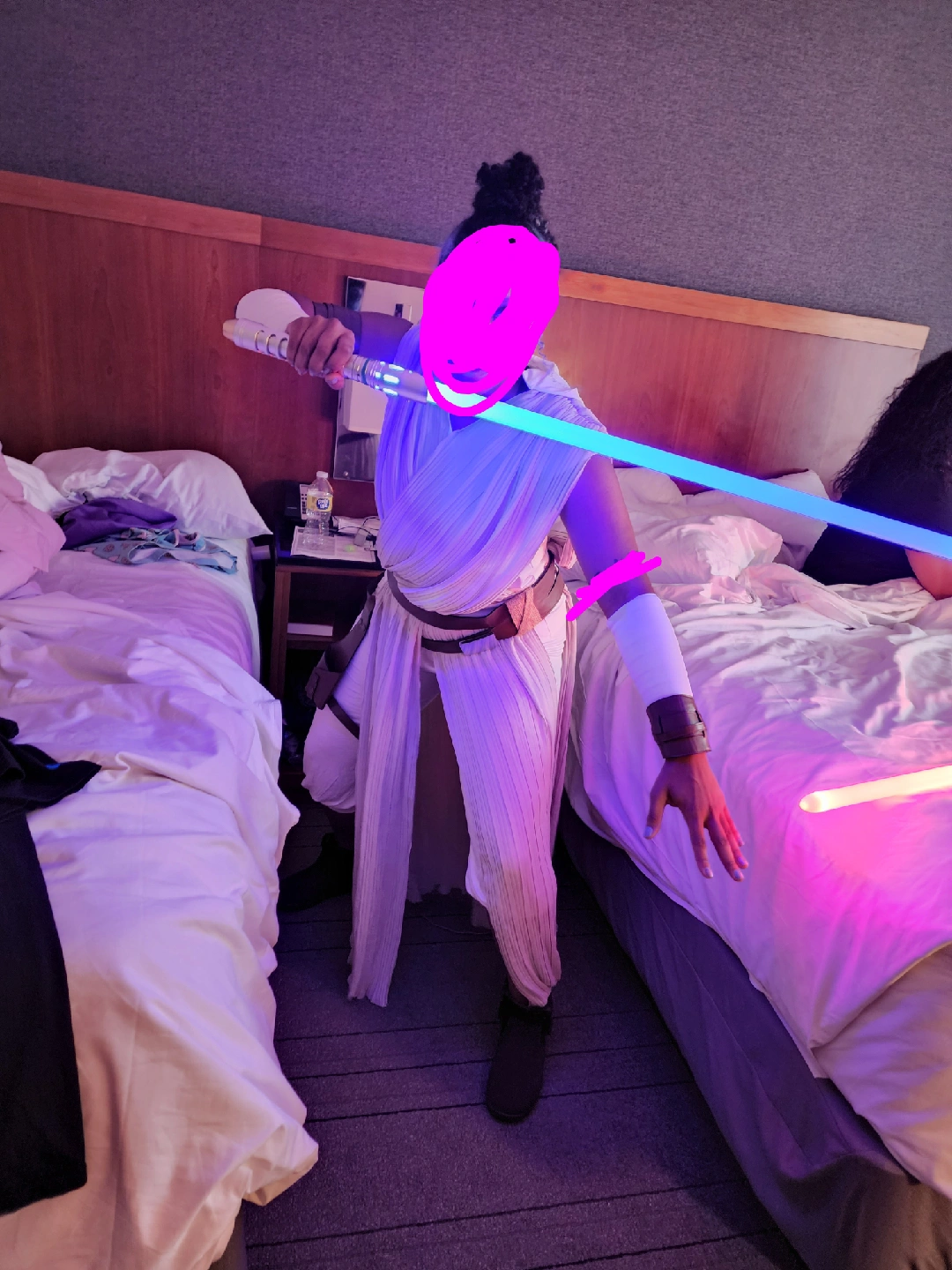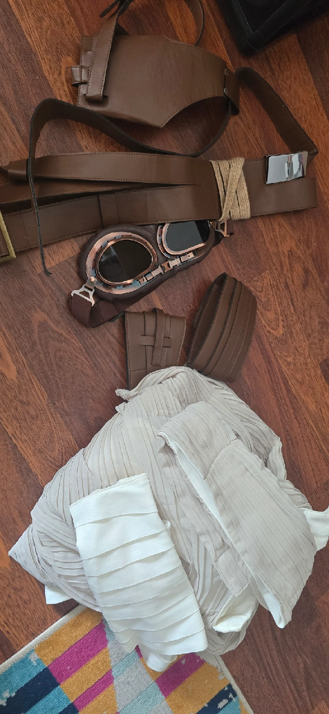 Selling a Rey Star Wars costume. Includes the top, pants, belt, arm wraps, and goggles. Great for cosplay or Halloween. Size L pants, size XL top but fits like a L.