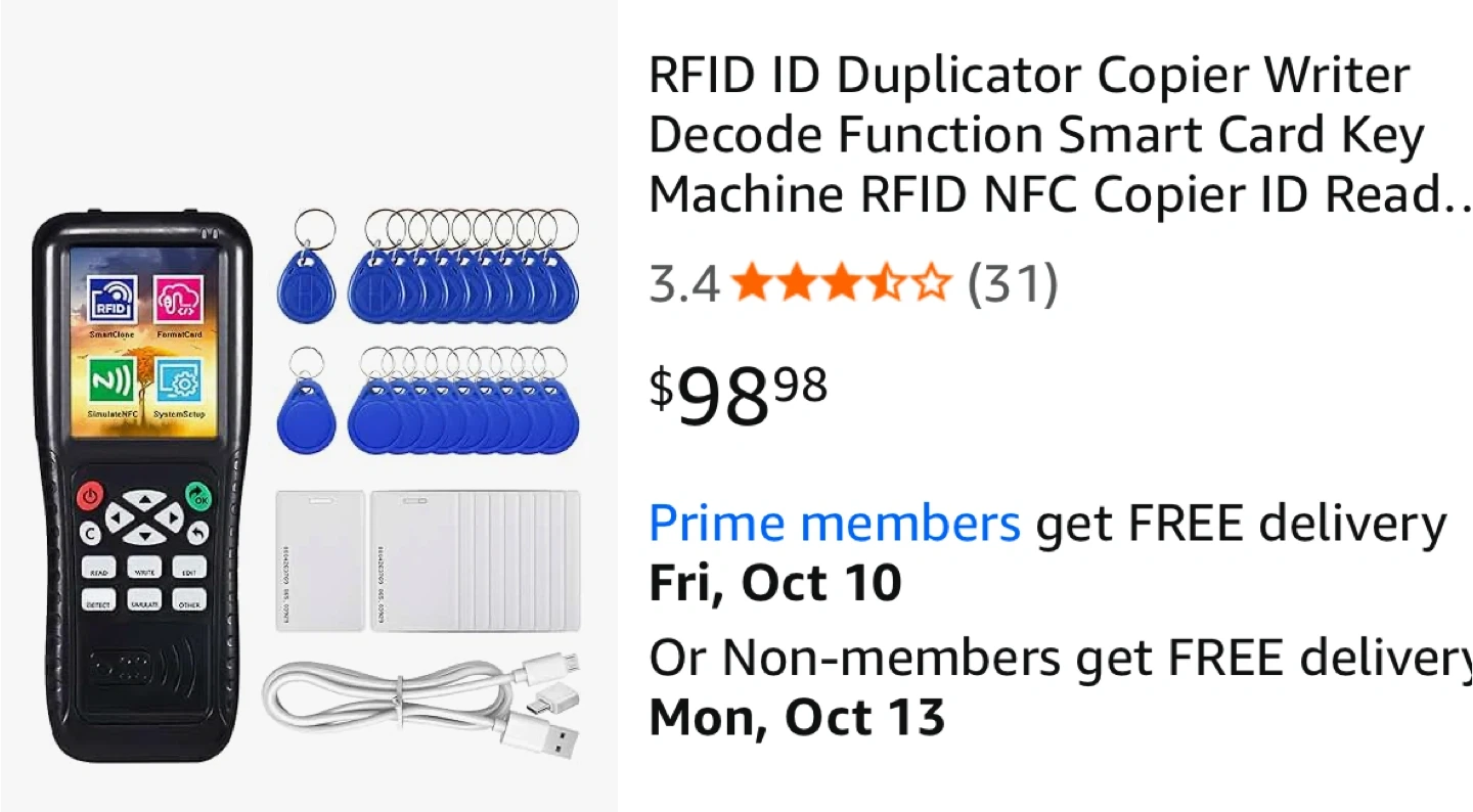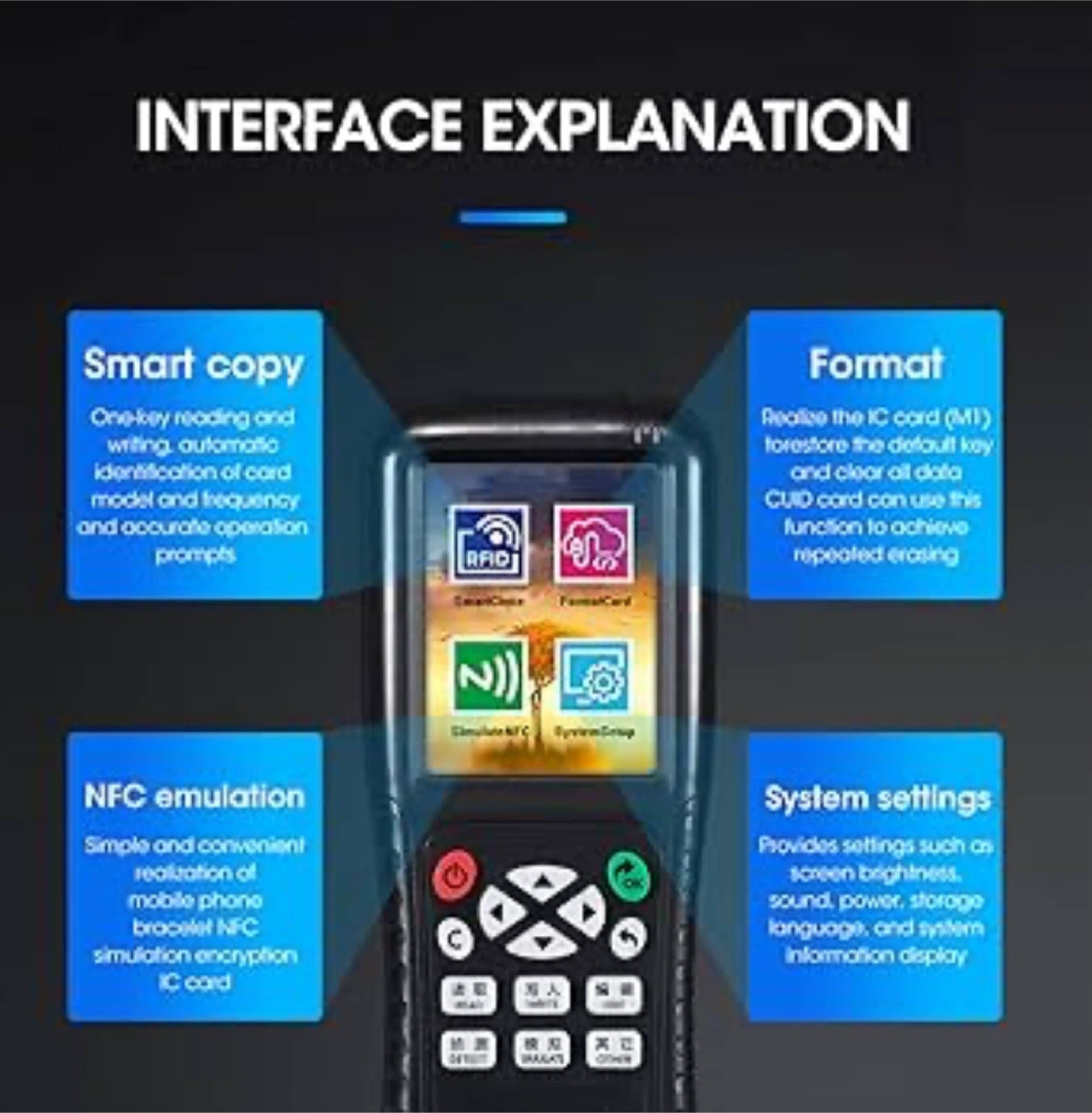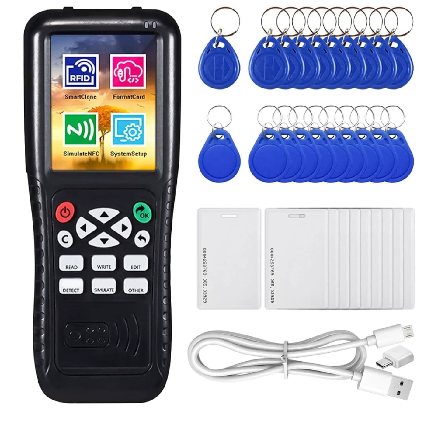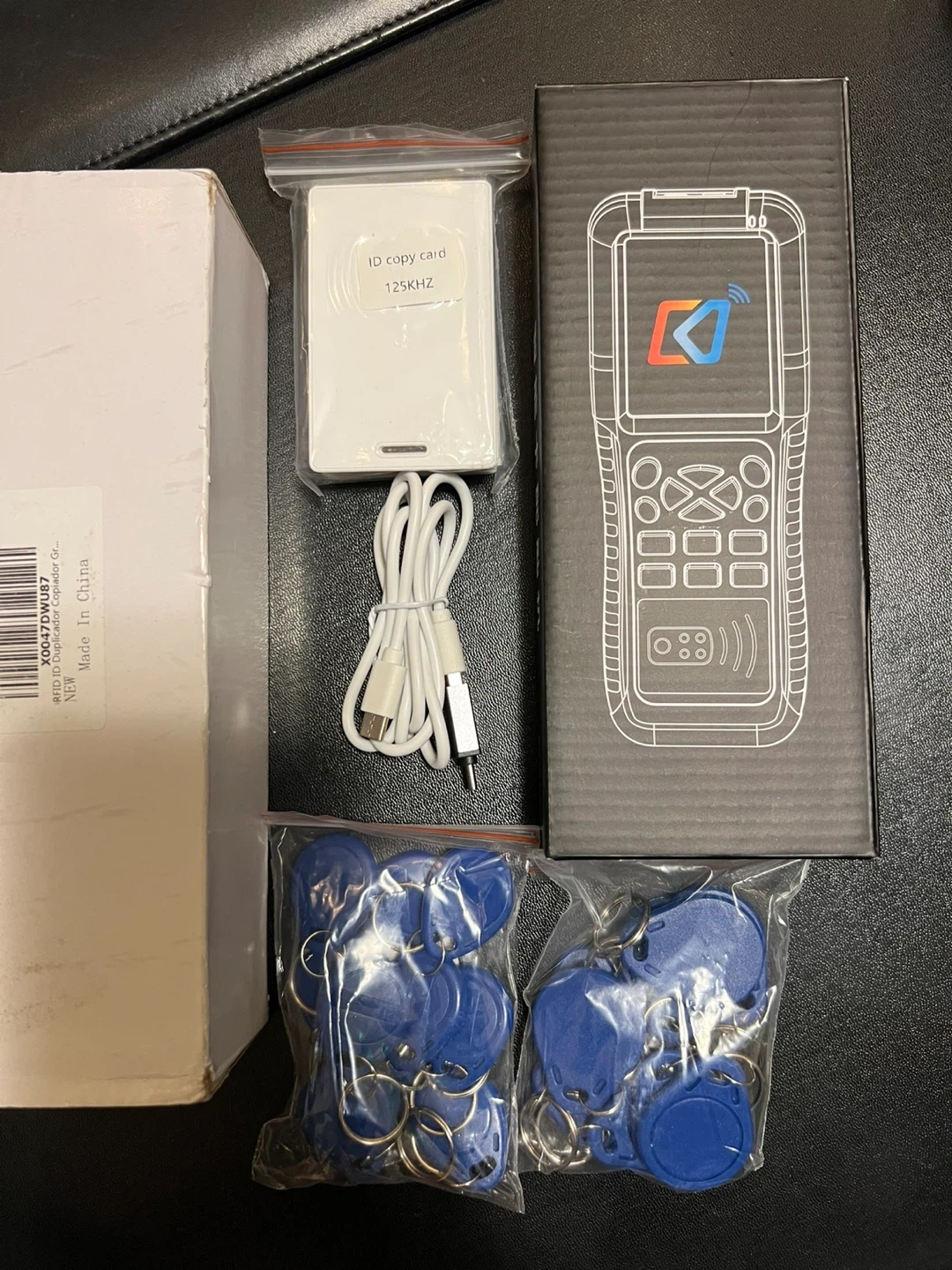 Selling an RFID ID Duplicator Copier Writer. It features a decode function for smart cards and key machines. It supports ID, IC full frequency band and has exclusive front and rear dual induction area for better compatibility. Also supports USB charging.