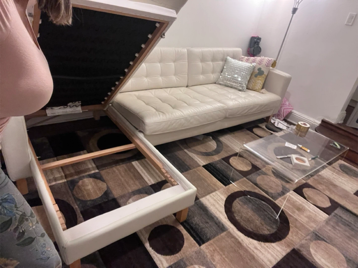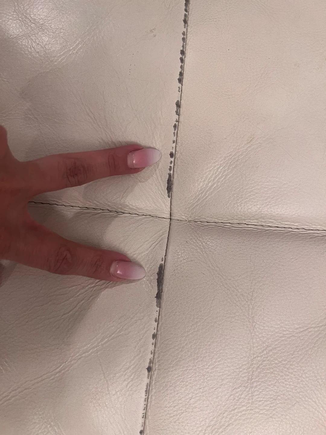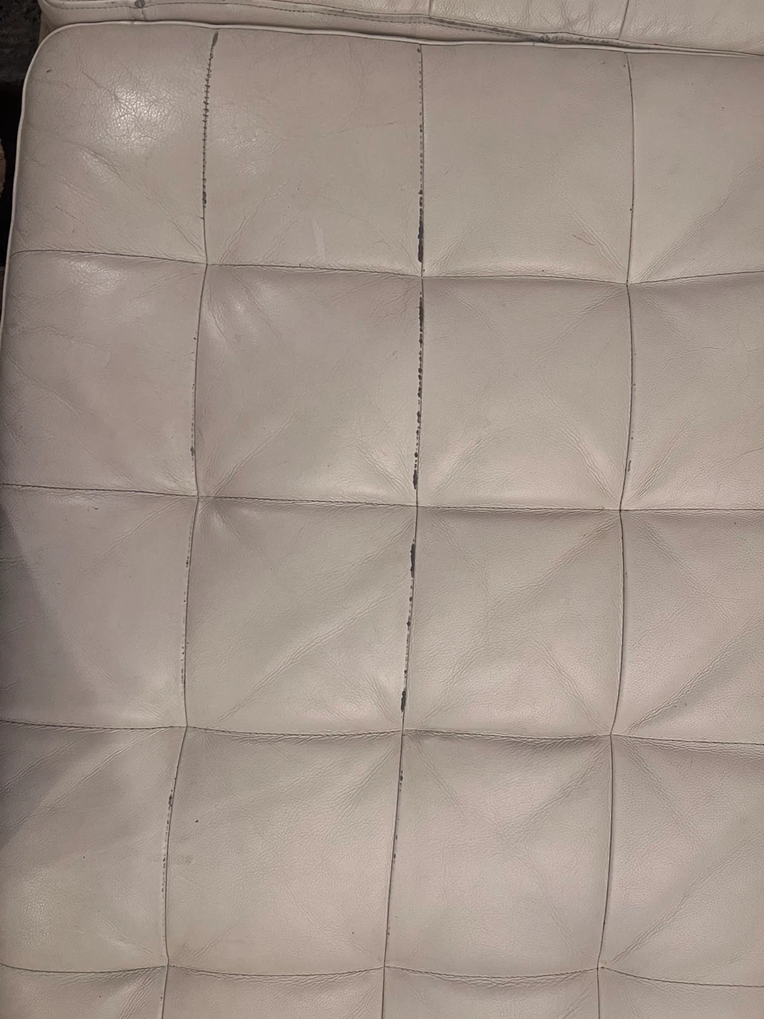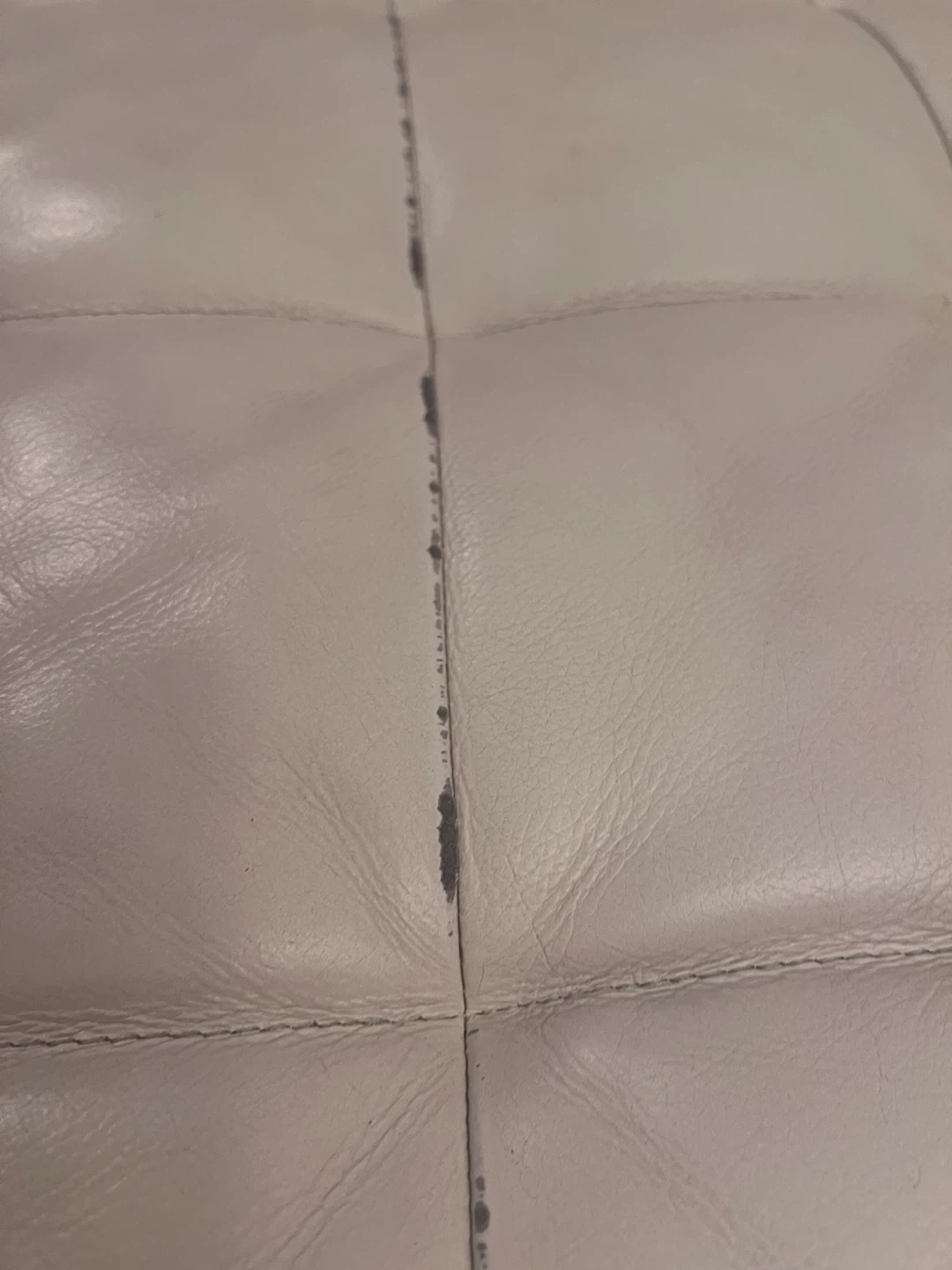 Selling a comfortable IKEA white leather sectional sofa! It features a chaise lounge for extra relaxation. As you can see from the pictures, there are some signs of wear and tear on the cushions, but it's still a great piece of furniture. The base can be lifted for storage!