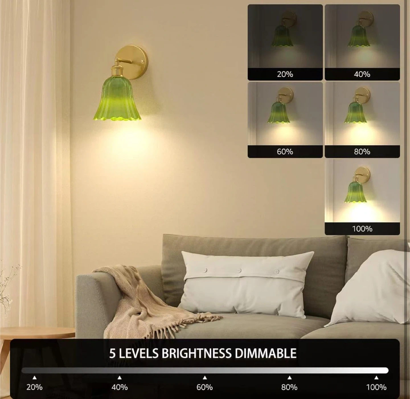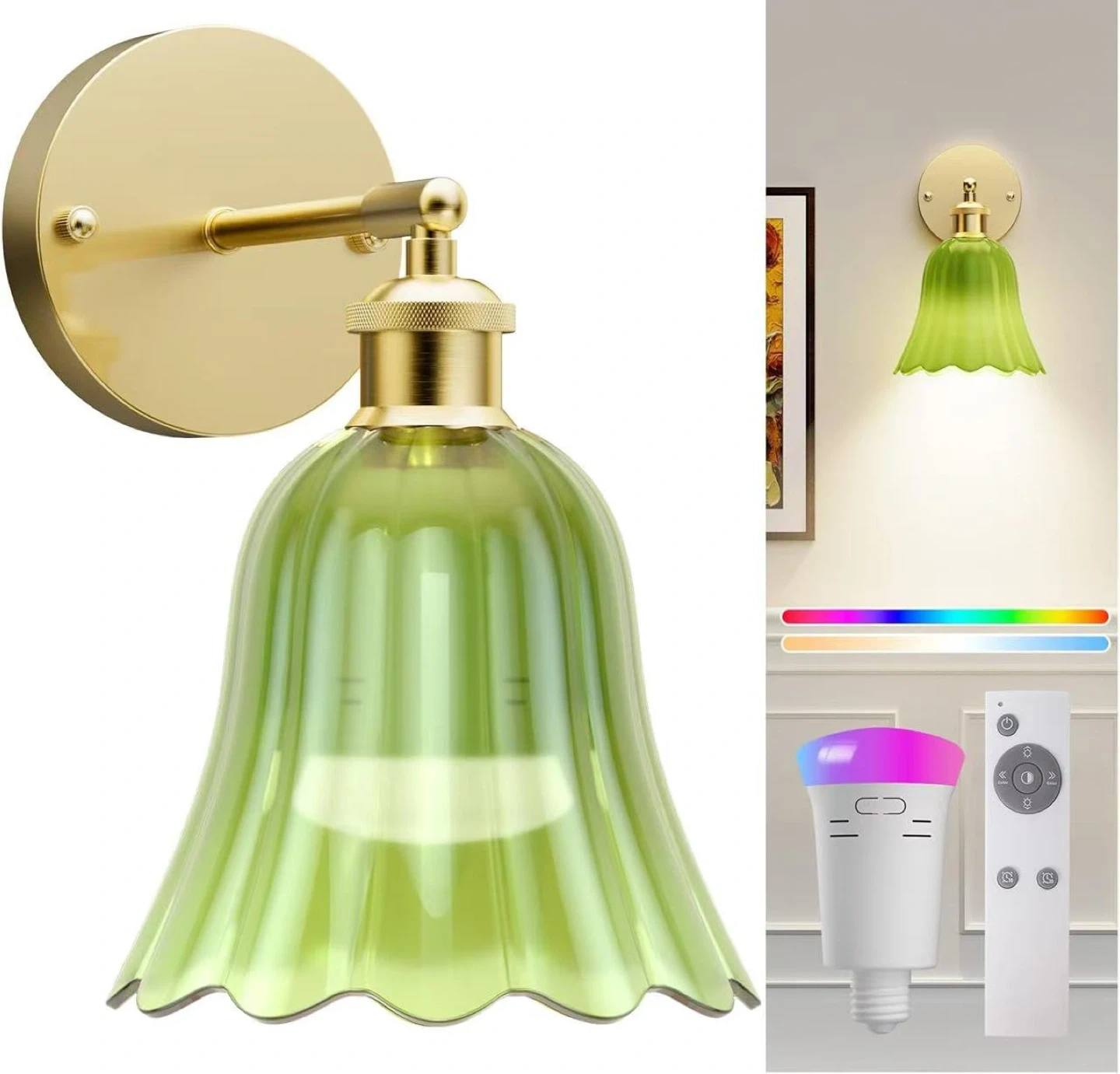 172Battery Operated Wall Sconce, Green Rechargeable Battery Wall Sconce with 10000mAh Dimmable Detachable Bulb and Remote, 18 Colors Wireless Wall Lamps for Bedroom Living Room Hallway