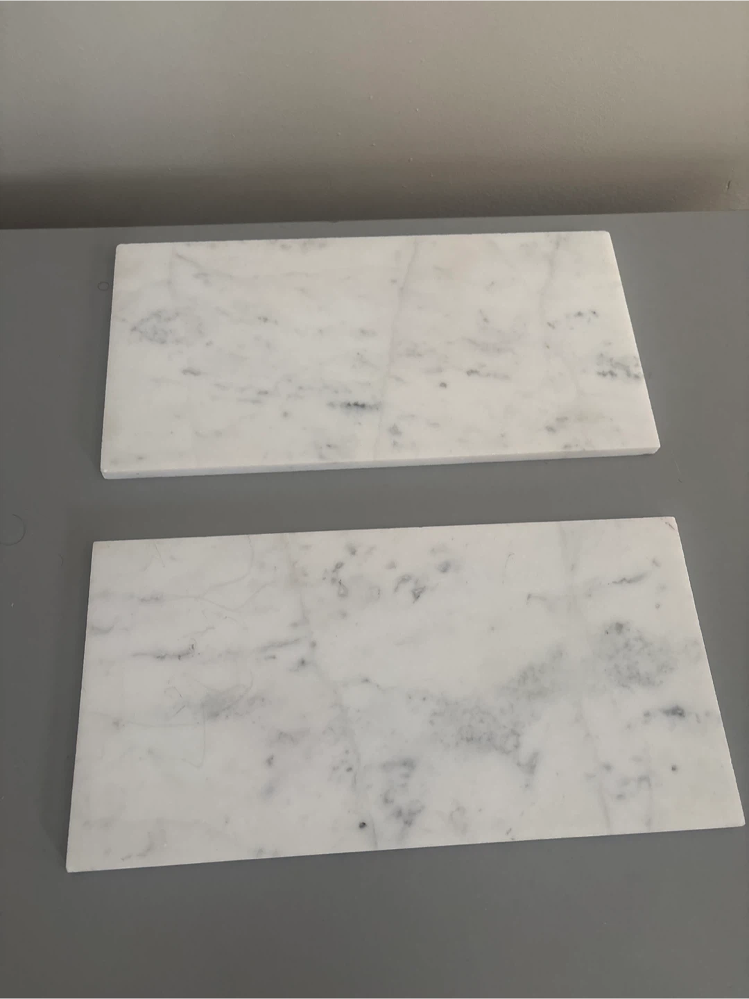 1 / 41 / 4Buy & SellTwo White Marble Cutting BoardsTwo White Marble Cutting Boards$4These are two white marble boards with gray veining. Marble material. Clean and ready for use.ConditionNewDimensionsL12 in W 6 in each WHERE TO MEETCheck LocationView MapSELLERverifiedAnaEdgewater62756 reviews1 chats·1 favorites·35 viewsSEND CHAT TO SELLERHi Ana! I’m interested in your listing.Hi Ana! I’m interested in your listing.Get the Karrot app to chatSign In to chat