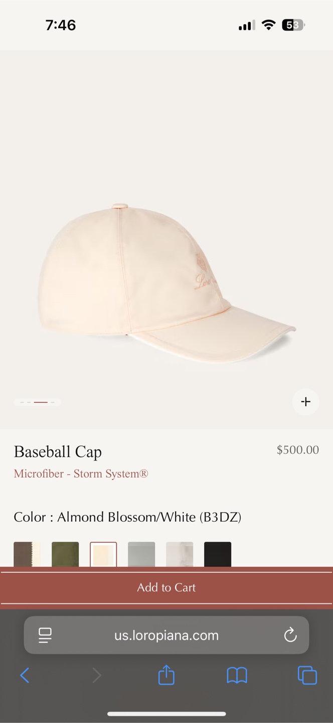 Selling a Loro Piana baseball cap in almond blossom and white! It's a size M and features the Storm System microfiber. The original price was $500