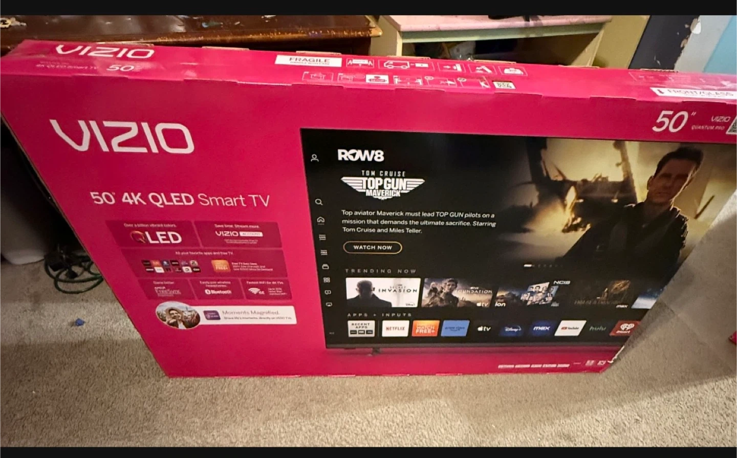 Selling a VIZIO 50" 4K QLED Smart TV. This smart TV has a QLED display for vibrant colors. It also supports Bluetooth and has a VIZIO account for streaming apps. Enjoy your favorite apps and free TV!