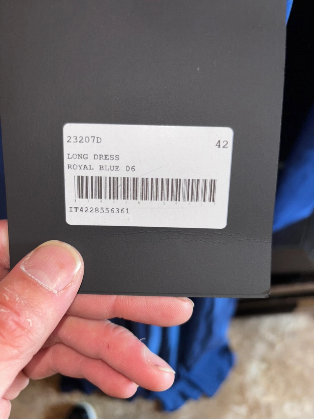 Selling a beautiful Rhea Costa long dress in royal blue! I actually have sizes 42 and 38 Perfect for a special occasion! Brand new never worn