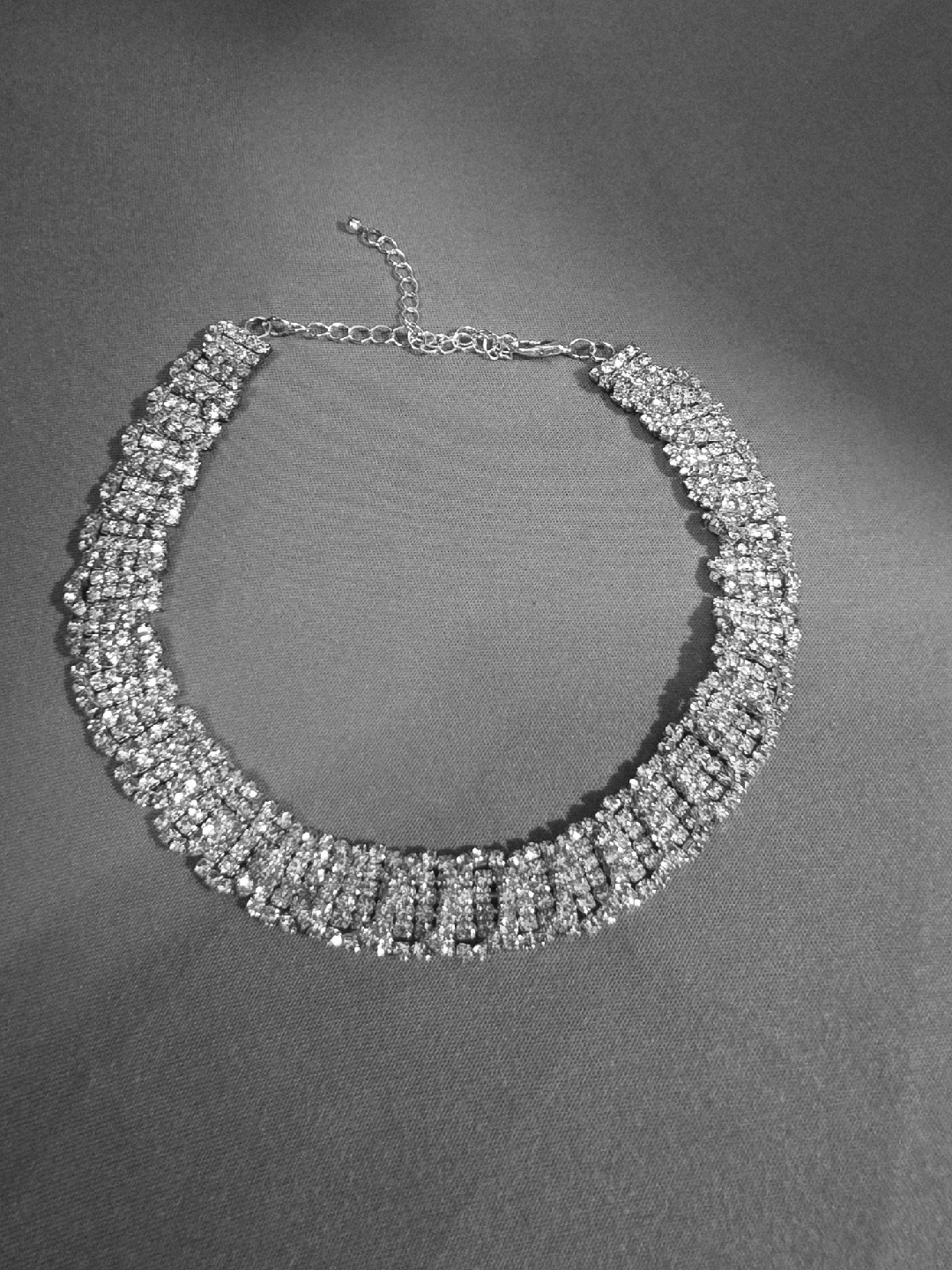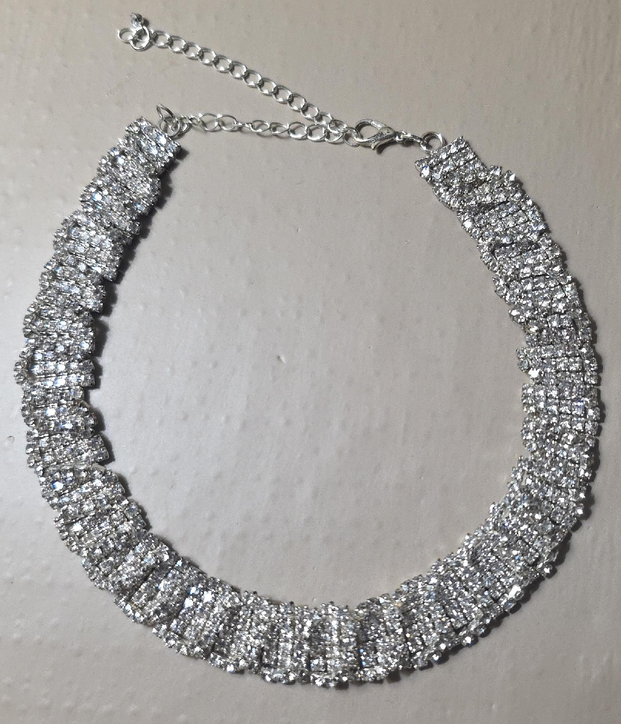 60Here's a beautiful rhinestone choker necklace! It's a silver color and would be perfect for adding some sparkle to any outfit