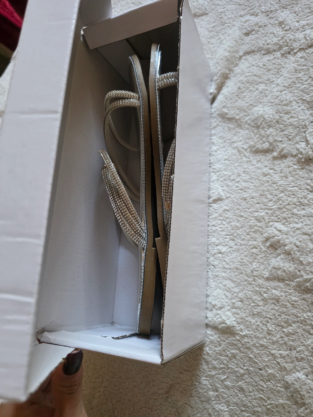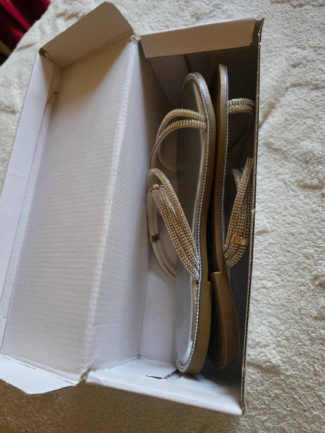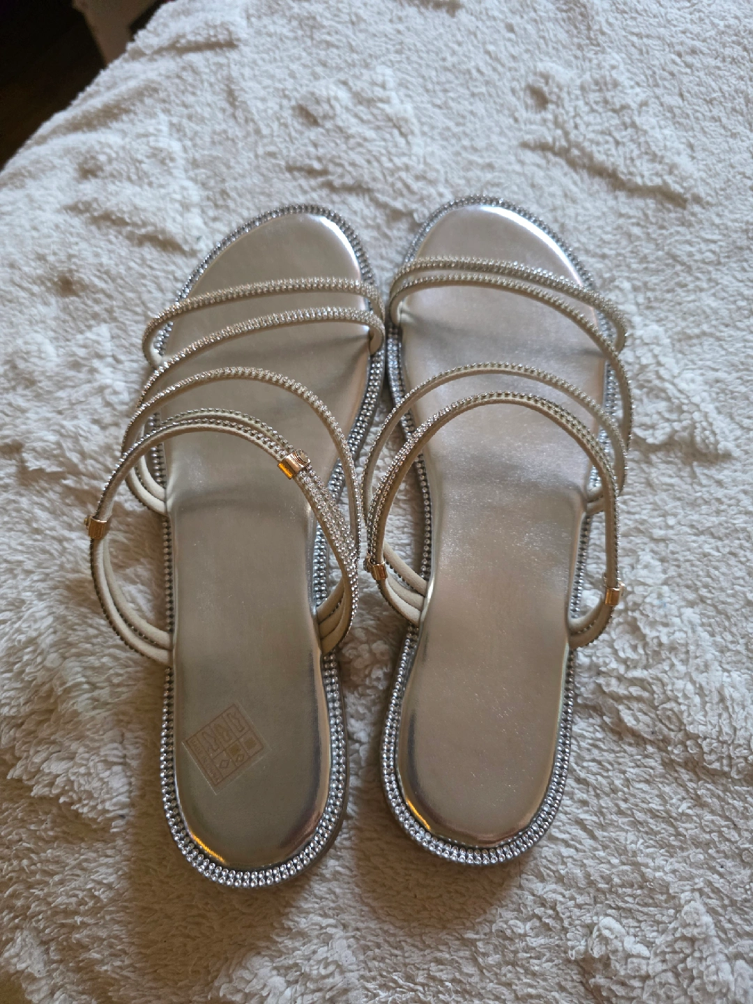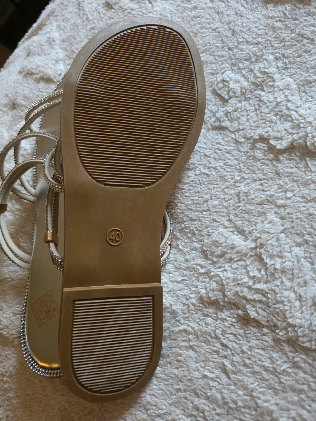 15Selling a pair of beautiful rhinestone strappy sandals. They are a size 40 and come with the original box. Perfect for dressing up any outfit!