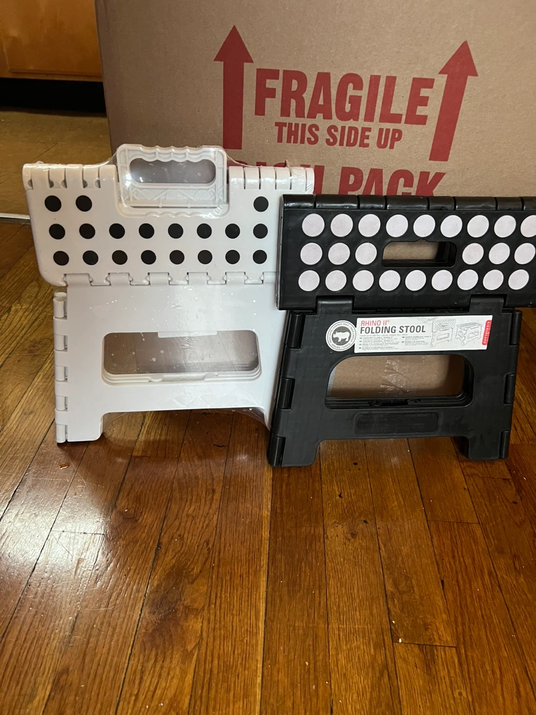 Selling two Rhino II folding stools, one in white and one in black. These are great for reaching those high shelves or for a little extra boost when you need it! They fold up for easy storage, too$10 each