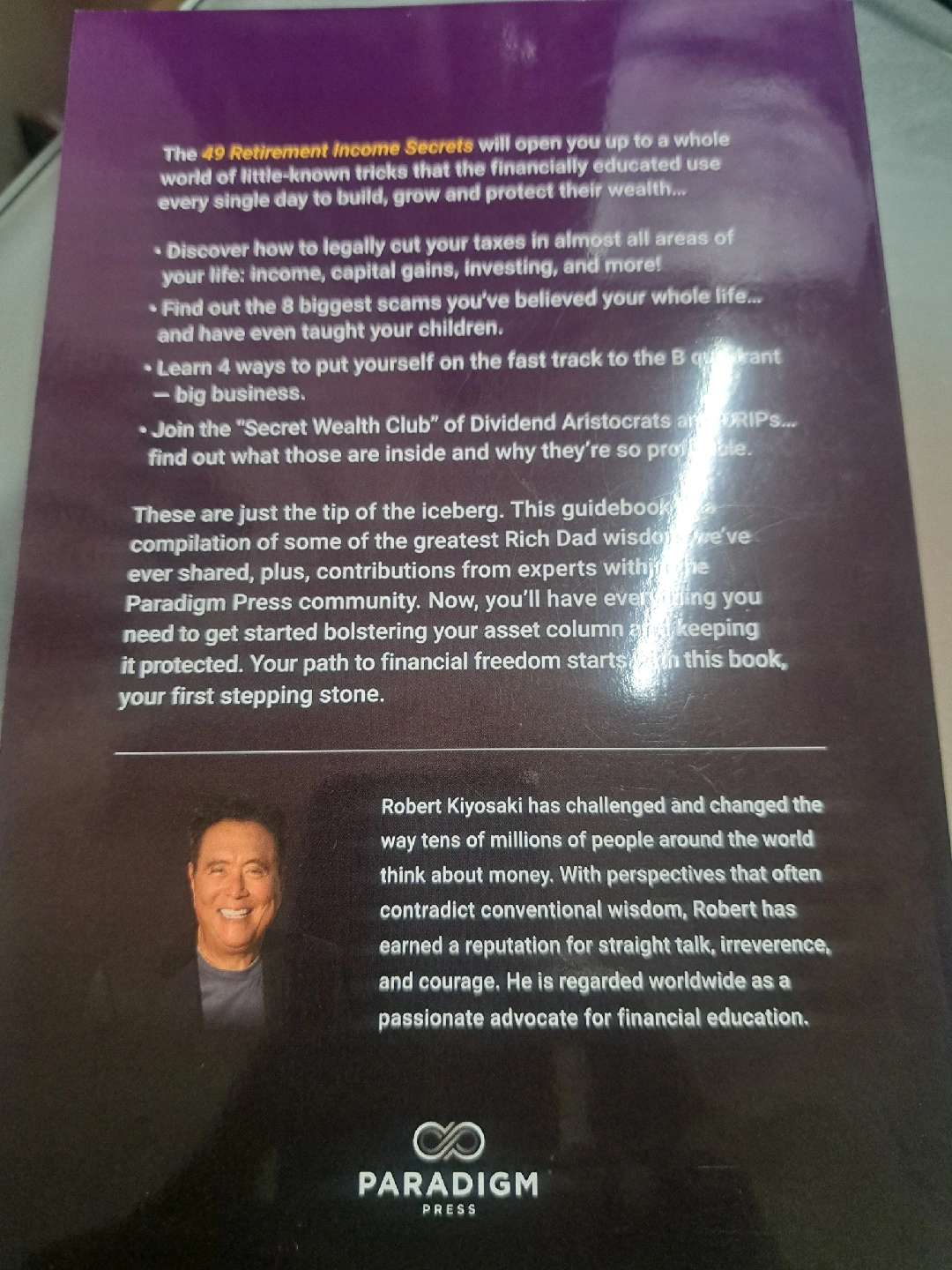 Selling "The Rich Dad Poor Dad Letter: 49 Retirement Income Secrets" by Robert Kiyosaki! This book will help you discover how to legally cut your taxes in almost all areas of your life, including income, capital gains, and investing. You'll also find out the 8 biggest scams you've believed your whole life and learn 4 ways to put yourself on the fast track to building a big business