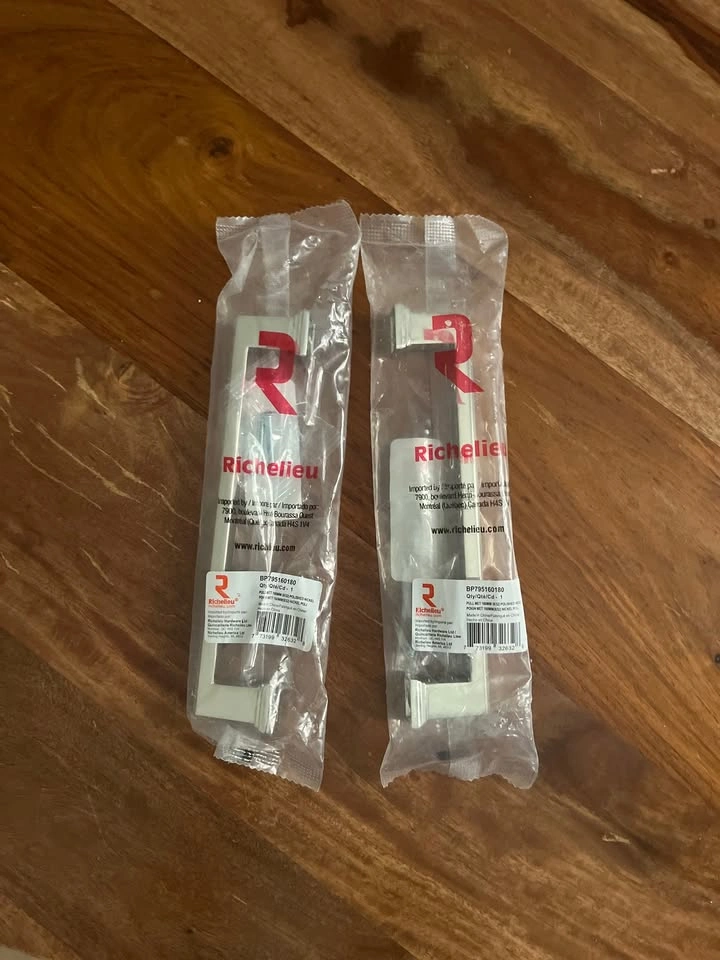 The Richelieu Hardware Mirabel Collection 6 5/16-inch Handle Pull is a stylish and durable addition to your cabinets. Made of polished nickel, these pull handles offer a sleek and modern look to your kitchen or bathroom cabinets. With a length of 6 5/16 inches, this set of 2 handles provide a comfortable grip for opening and closing your cabinets with ease. Perfect for adding a touch of elegance to your home's interior design. Feel free to message if you have any questions!