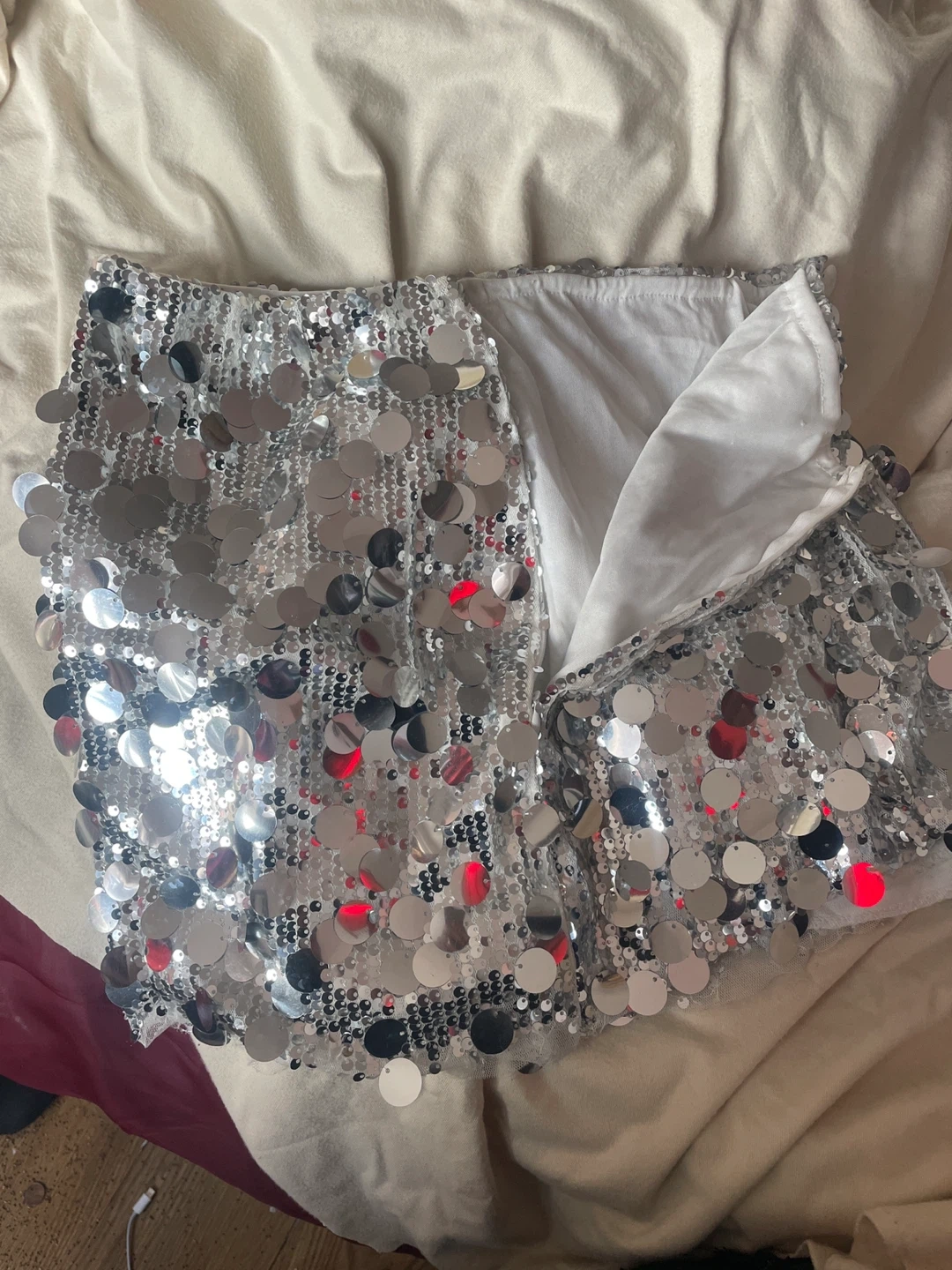 Selling these fun silver sequin shorts! They're perfect for parties or a night out. The sequins catch the light beautifully, adding a touch of sparkle to any outfit