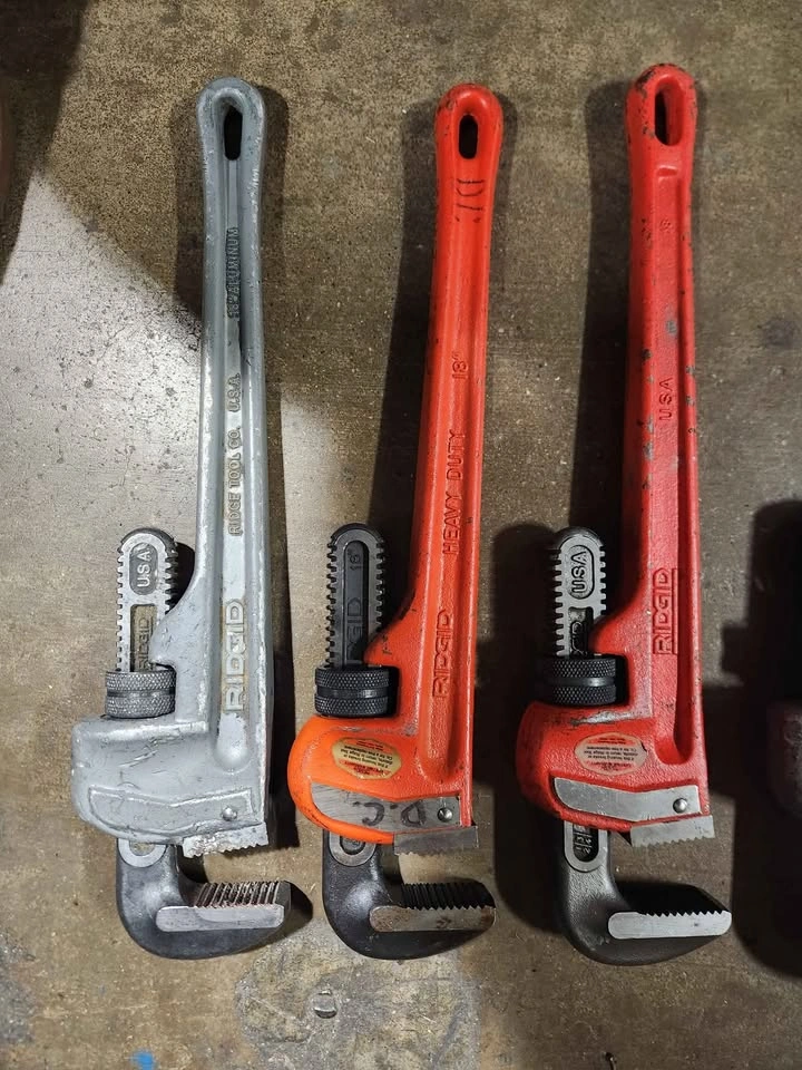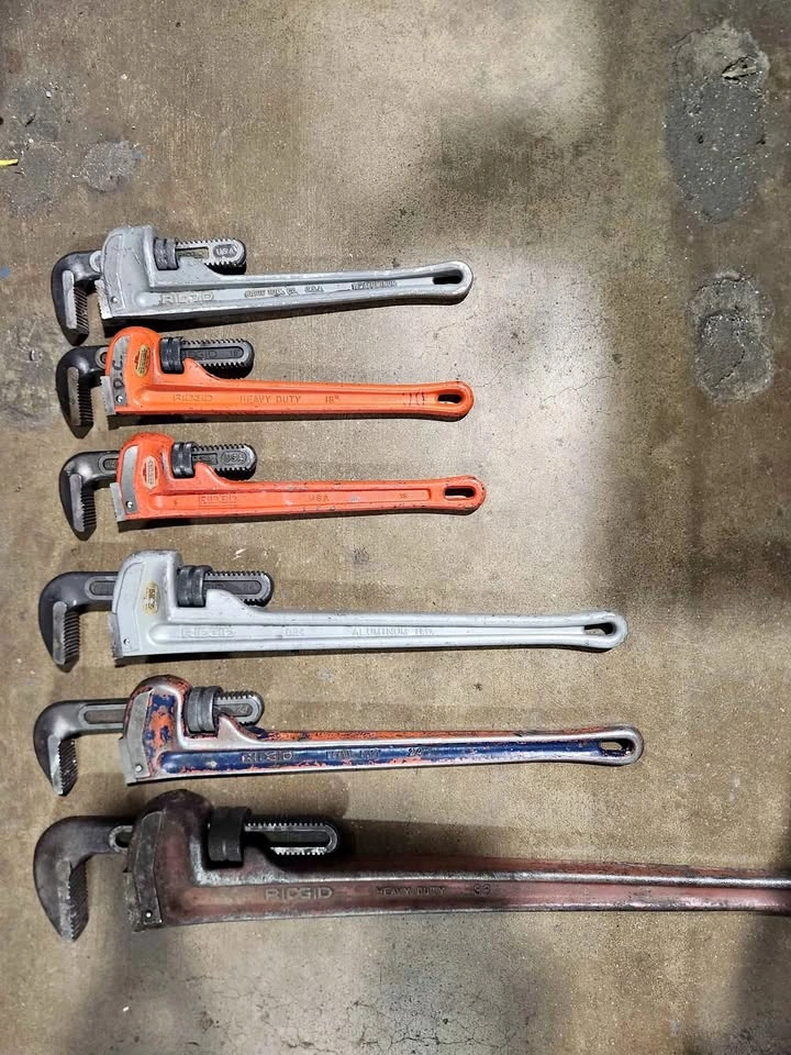 10Ridgid pipe wrenches. 3-18" 2-24" and 1 36" price is for all but will sell separately.