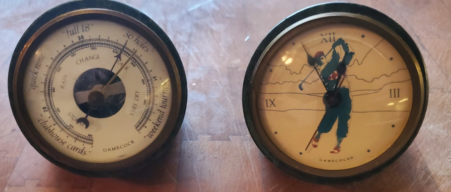 Vintage Gamecock Golf Clock & Barometer Set