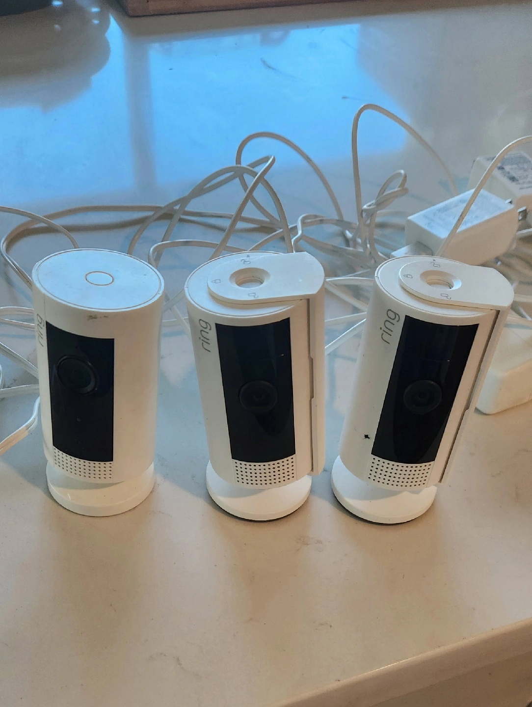Selling a set of three Ring Indoor Cams! They're perfect for keeping an eye on your home. Easy to set up and use. can be sold separately or as a set.