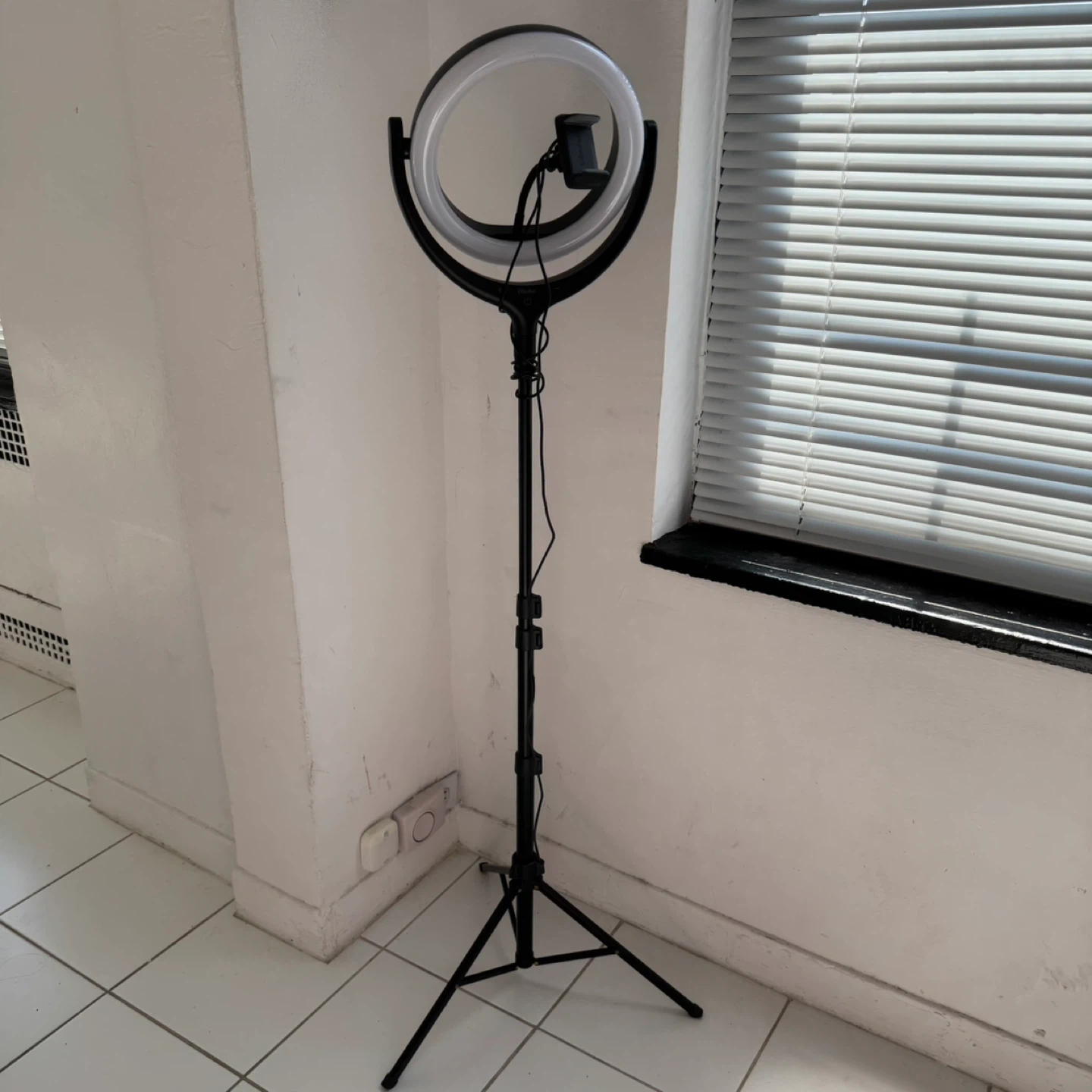 Selling a ring light with a tripod stand! It's in great condition and perfect for taking photos or videos. It's lightweight and portable, so you can easily take it with you wherever you go.