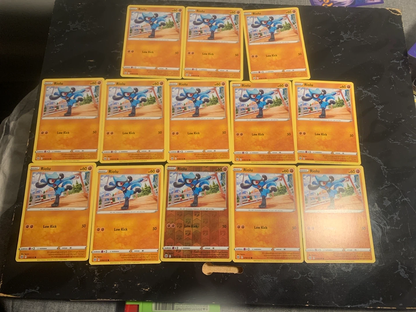 92Selling a set of 13 Riolu Pokemon cards. Ten are the standard card and one is a foil card. Great for any Pokemon collector!