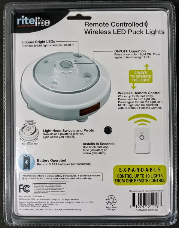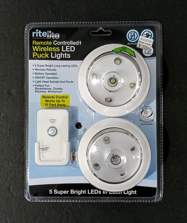 Rite Lite Remote Controlled Wireless LED Puck Lights Set of 2 Brand New $10 Firm