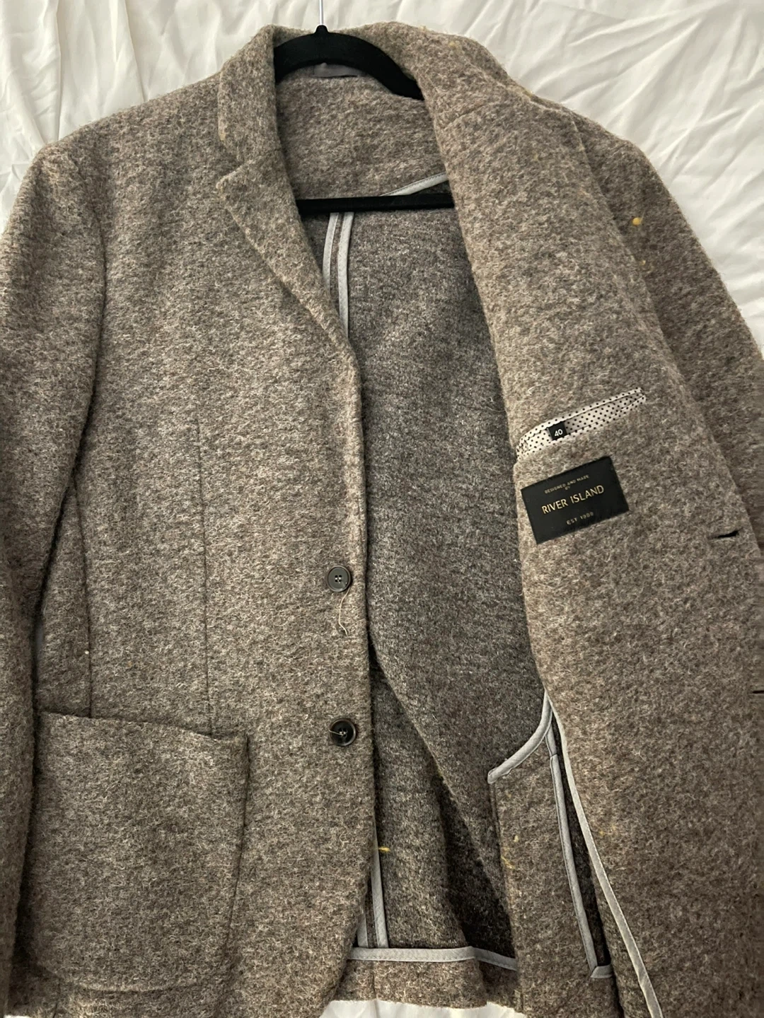 Selling a River Island blazer in a neutral, heathered color. It's a size 40. Perfect for adding a touch of style to your wardrobe!