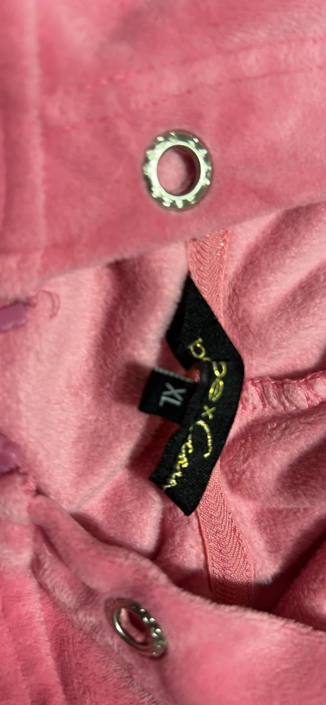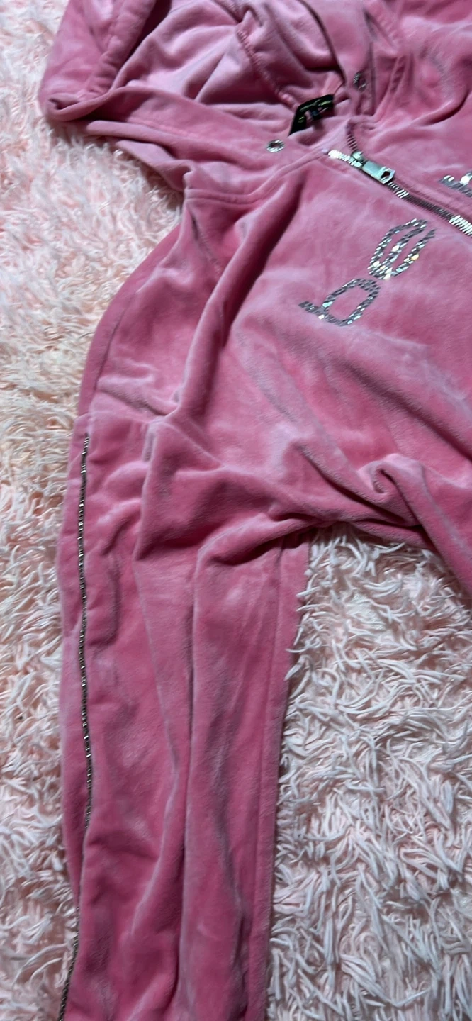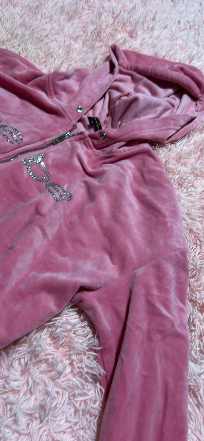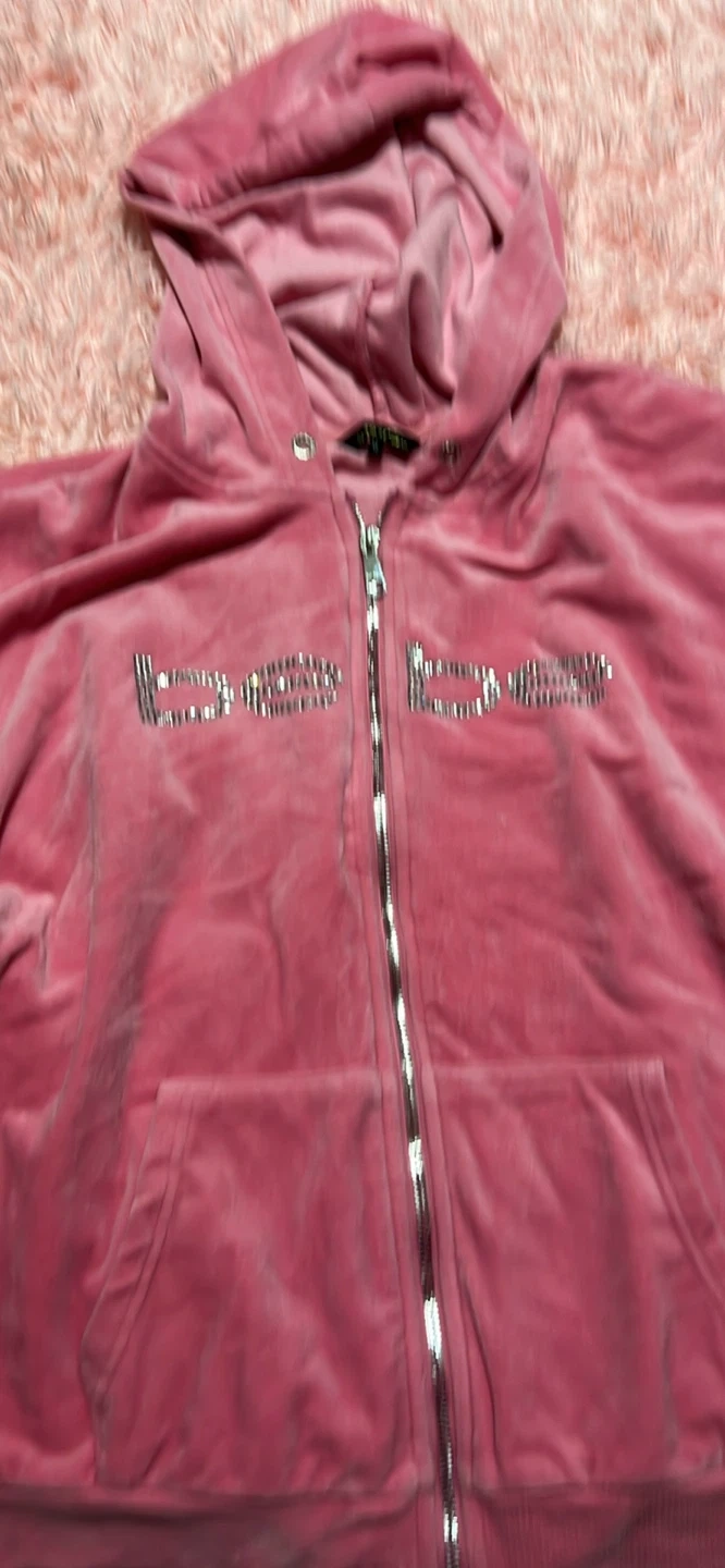 Selling a cute pink velour hoodie from Bebe! It's a size XL and features rhinestone detailing. Perfect for adding a touch of sparkle to your casual outfits