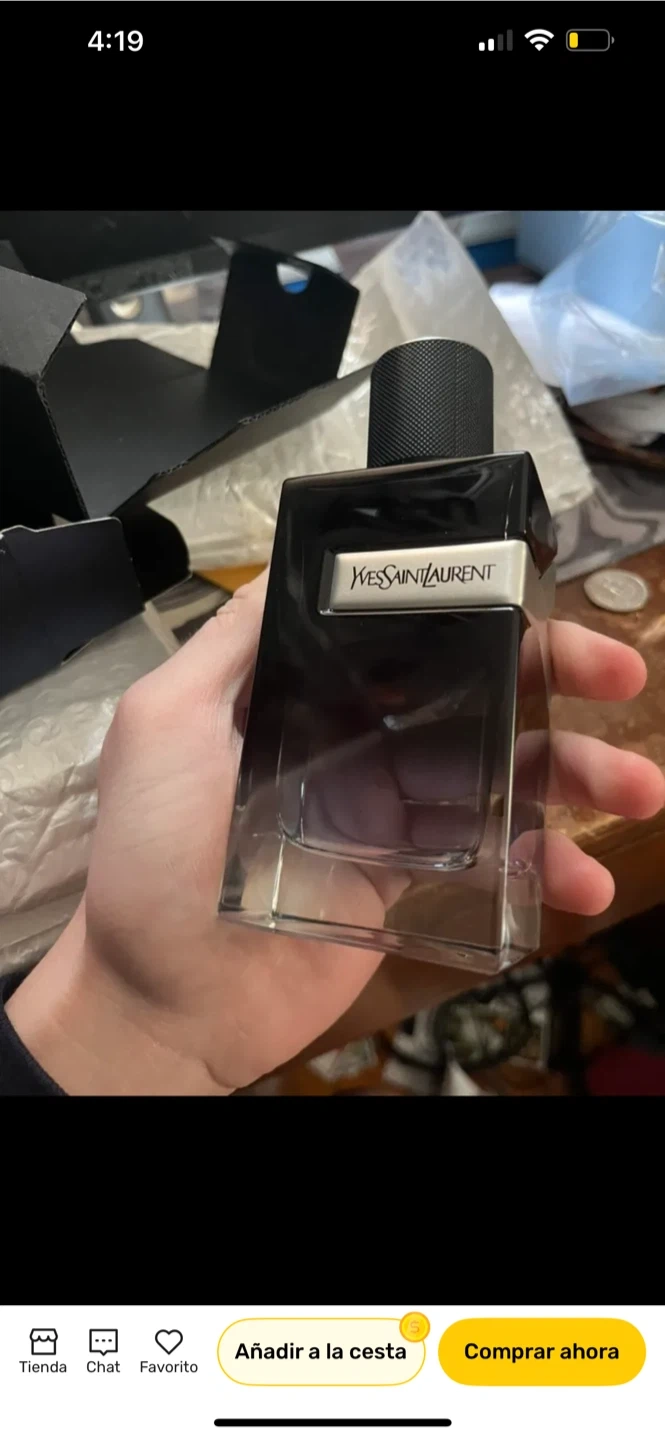 This is a bottle of Yves Saint Laurent Y Eau de Parfum for men. It's a 3.3 fl oz size. The fragrance comes in a sleek, dark glass bottle with a black cap.