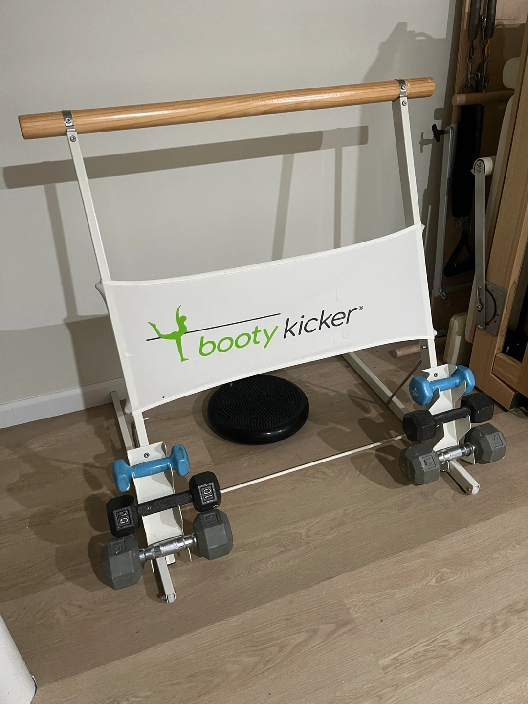Selling a Booty Kicker barre! It's in great condition and ready for a new home. Perfect for at-home for barre workouts and fitness routines. One tiny hole in the fabric toward bottom edge, barely noticeable. *WEIGHTS NOT INCLUDED