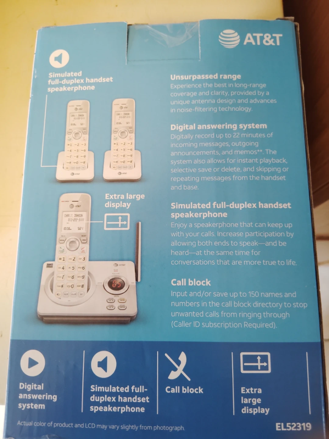 BRAND NEW FACTORY SEALED...AT&T 3 HANDSET ANSWERING SYSTEM... WITH UNSURPASSED RANGE , DIGITAL ANSWERING SYSTEM , DUPLEX HANDSET , CALL BLOCK , CALLER ID, SPEAKER PHONE