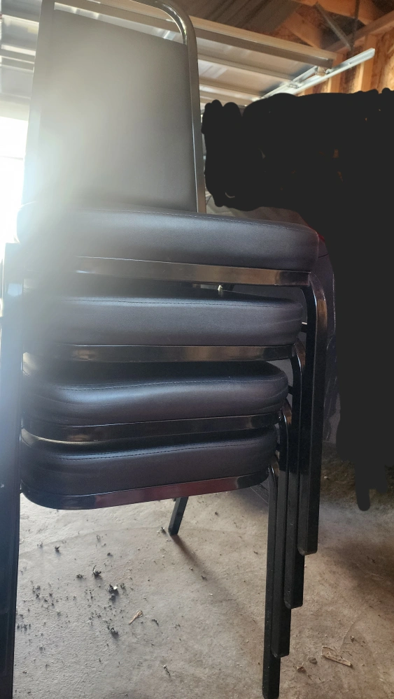 Selling a set of 4 black stacking chairs. They're perfect for extra seating and easy to store since they stack nicely. Great for events or everyday use! and sturdy. Like new