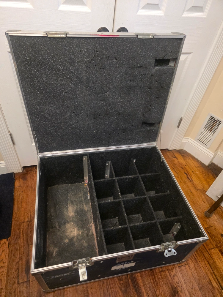 Selling a used Frost road case. It has some wear and tear, but it's still functional. Great for transporting equipment or for storage. measures 31x24x15 external. with cubbies inside to separate contents.