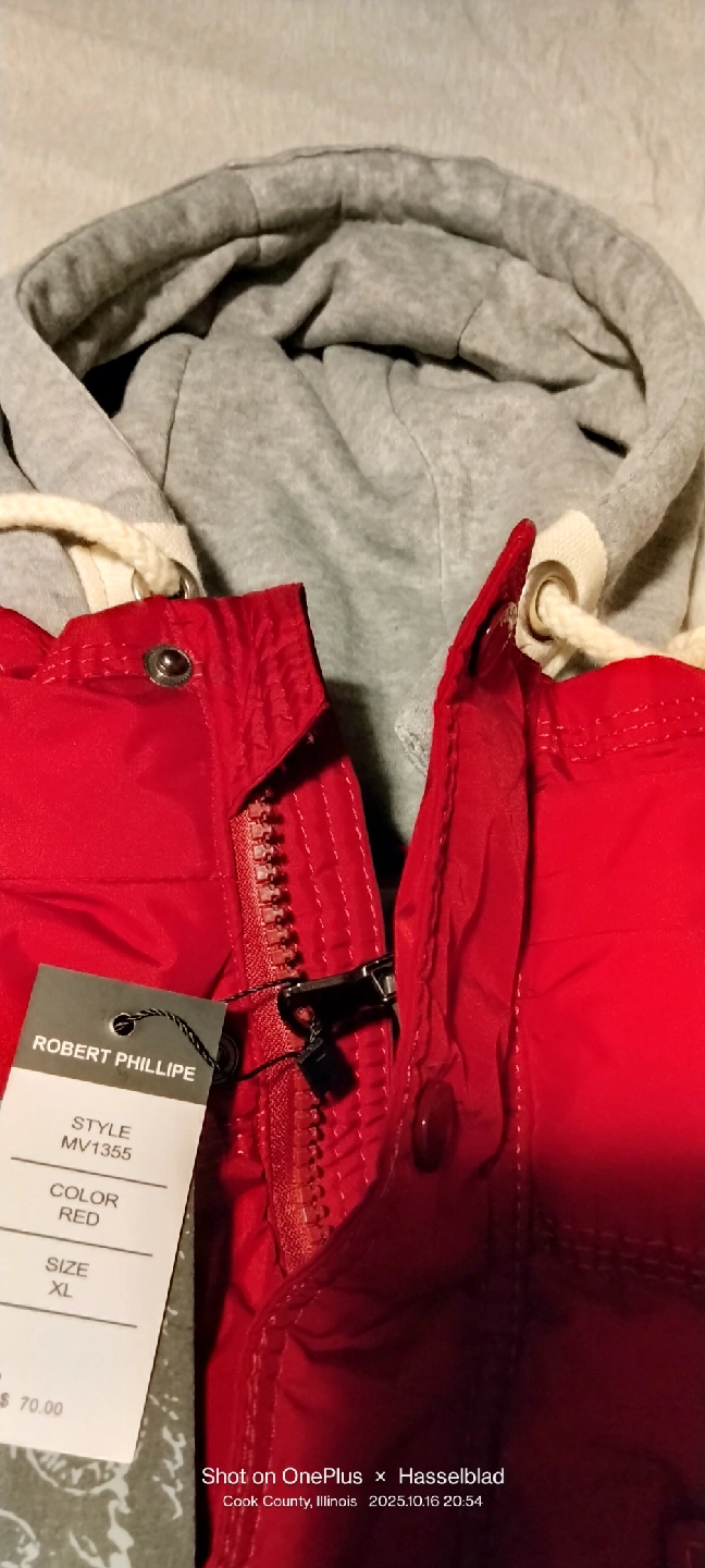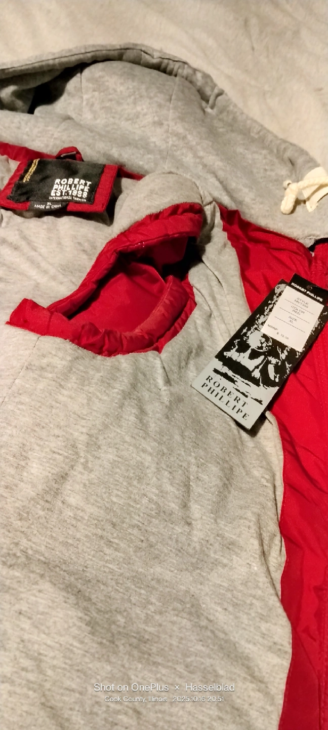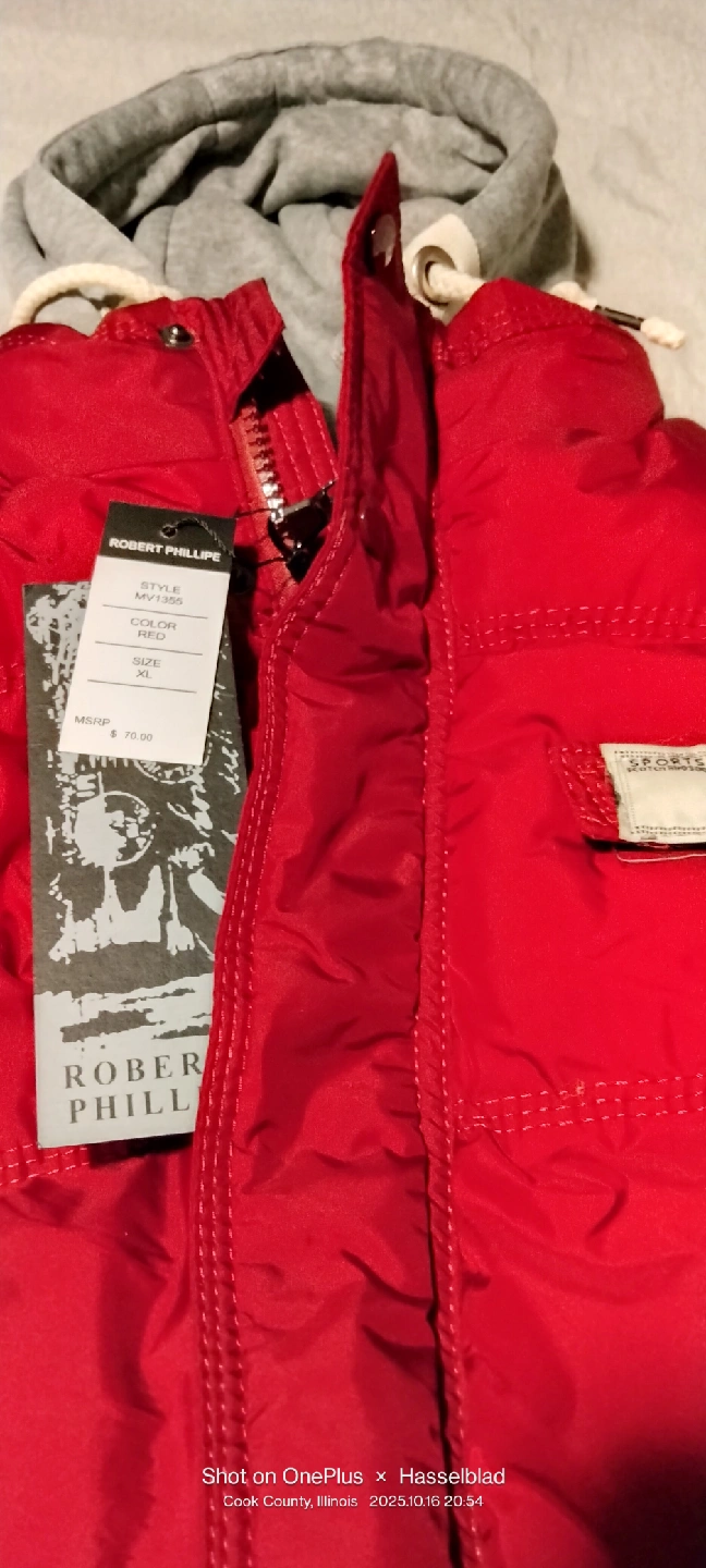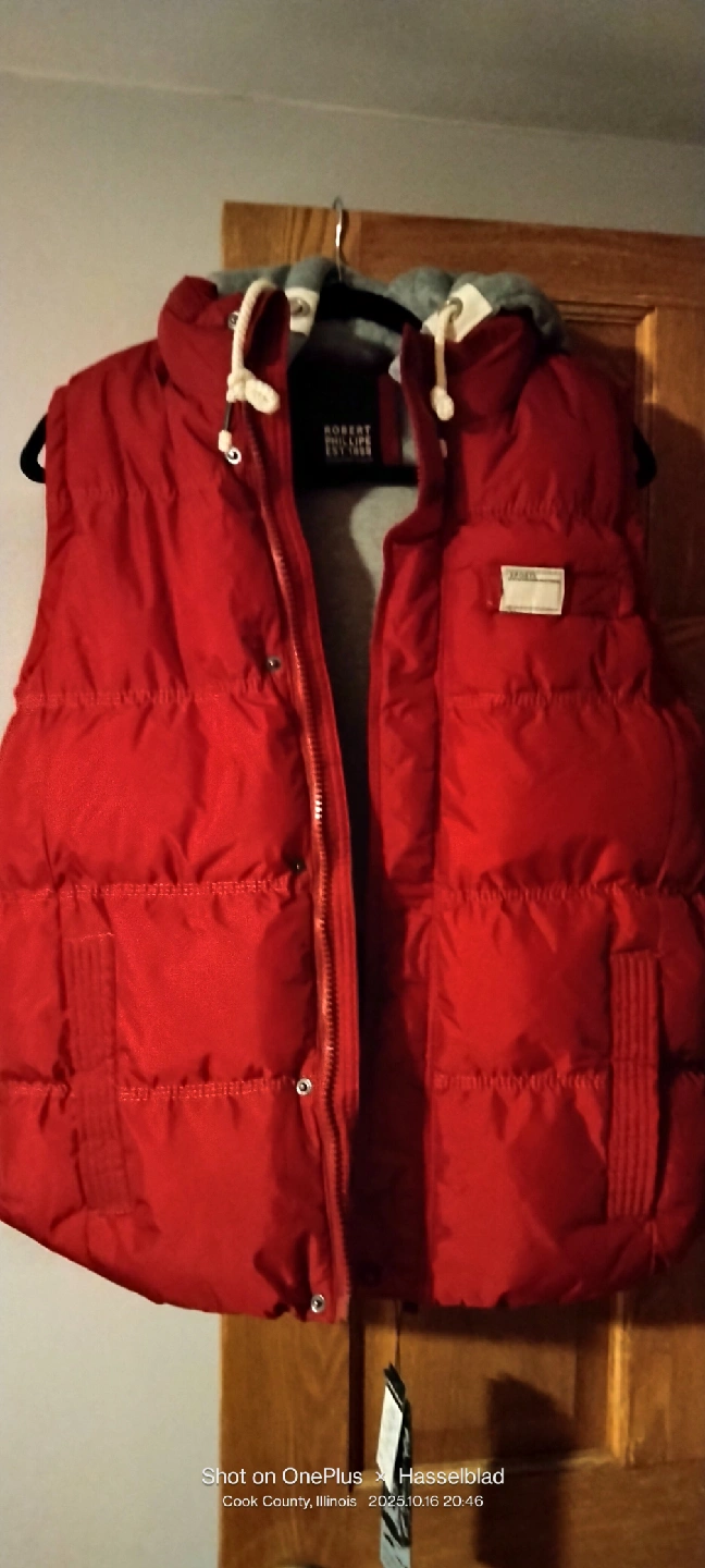 15Robert Phillipe puffer vest with a removable hood! It's brand new and looks perfectly made to keep warm.Mashine washeble. Size XL