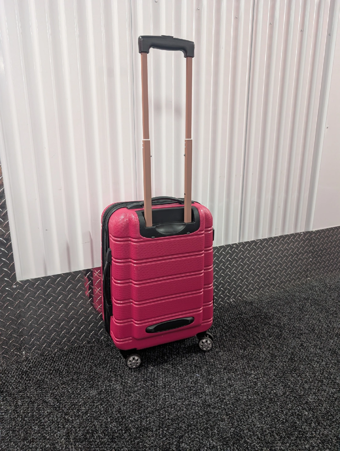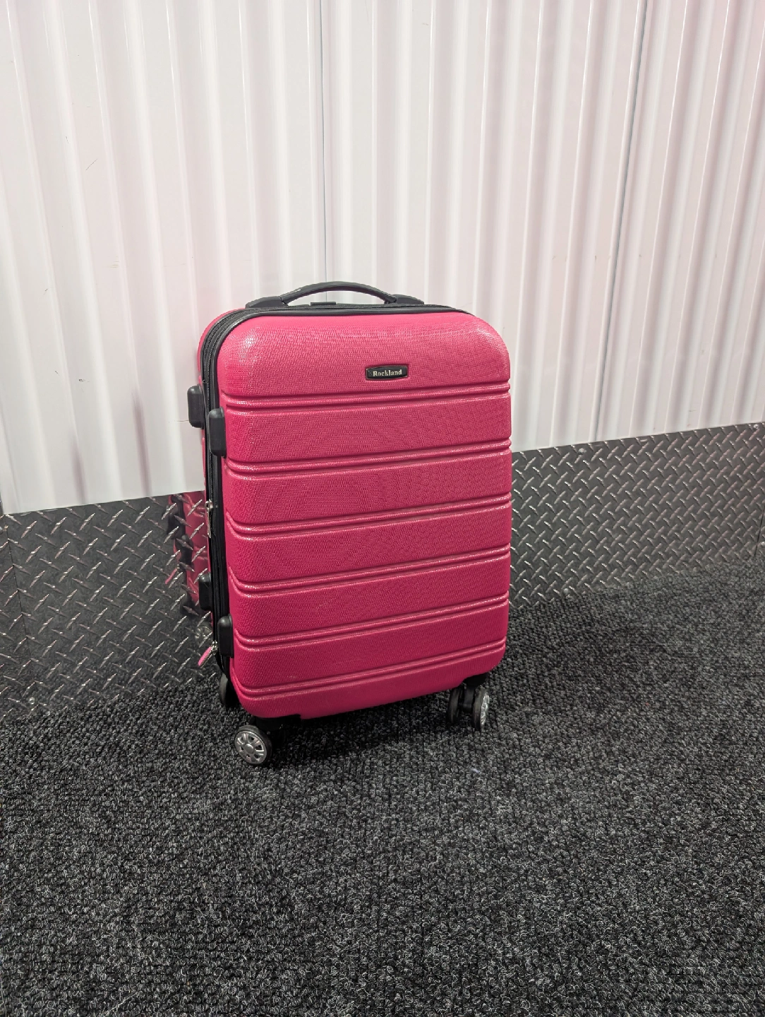 I'm selling a cute Rockland carry-on suitcase in pink. It's in great condition and ready for your next trip! It's lightweight and portable, perfect for easy travel