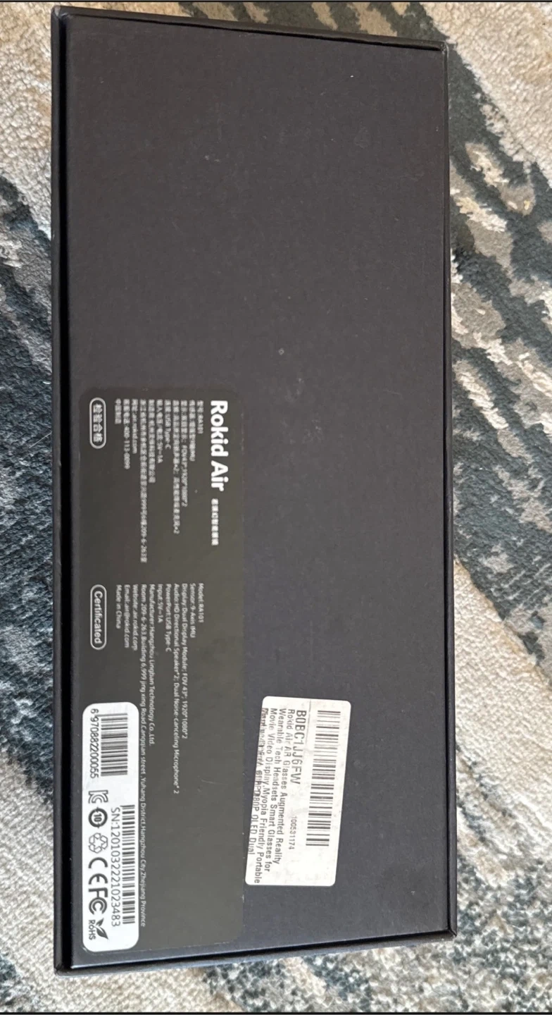 76Selling a Rokid Air AR Glasses set! These lightweight augmented reality smart glasses feature a 120" HD virtual screen. They are compatible with future Type C models, Steam Deck, gaming consoles, PC, Android, and Home Theater. The box is included!
