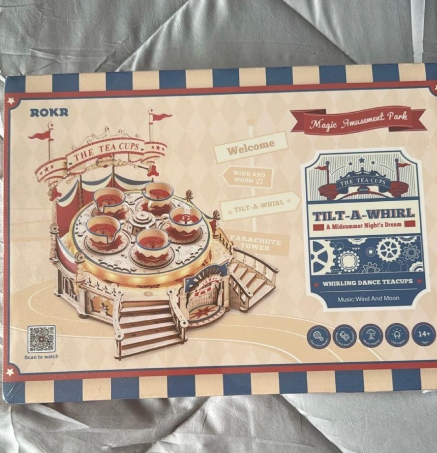 Selling a brand new ROKR Tilt-A-Whirl wooden puzzle! This fun, vintage-style model is perfect for ages 14+. It features whirling dance teacups and is powered by music: Wind And Moon. The box is included.