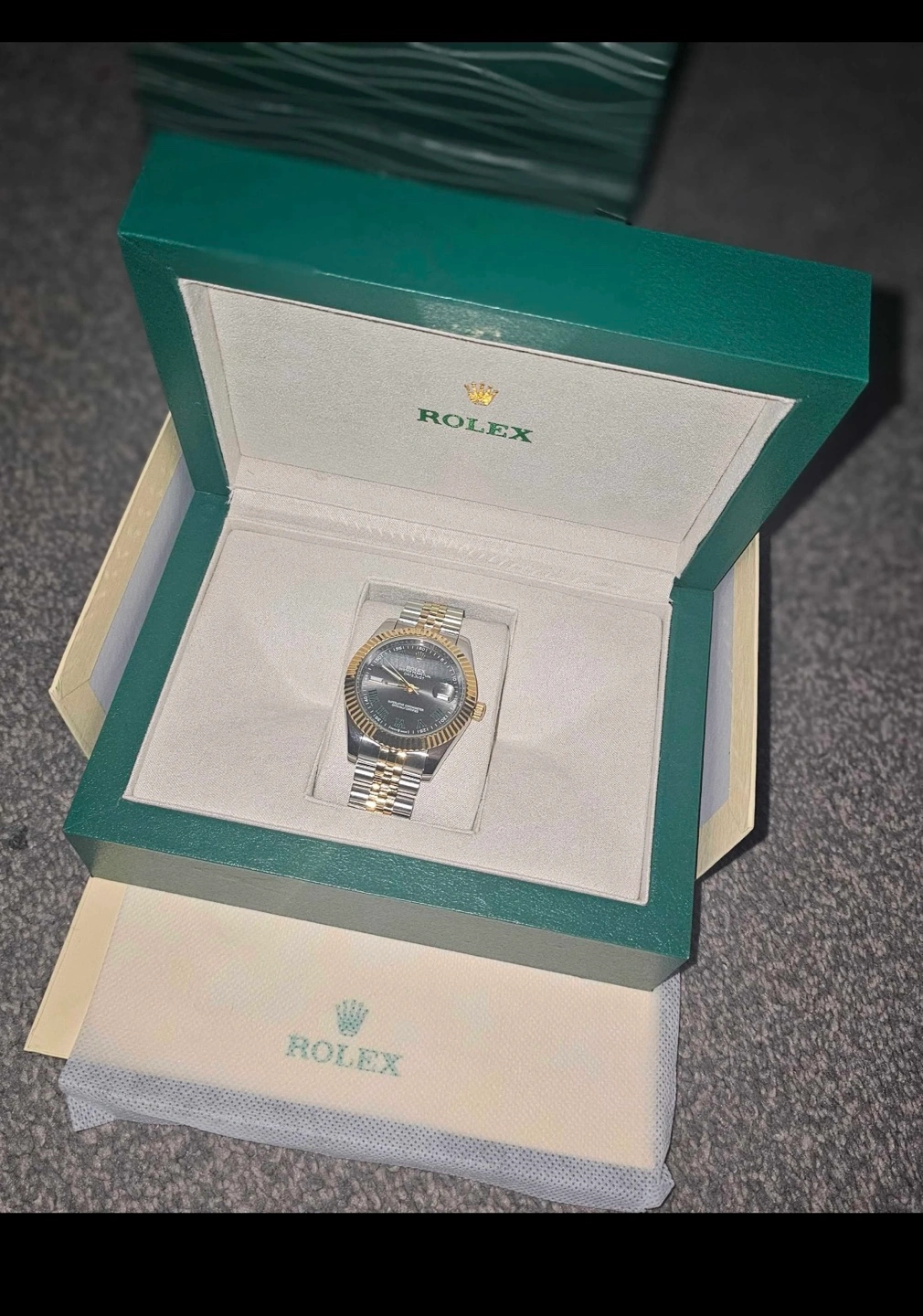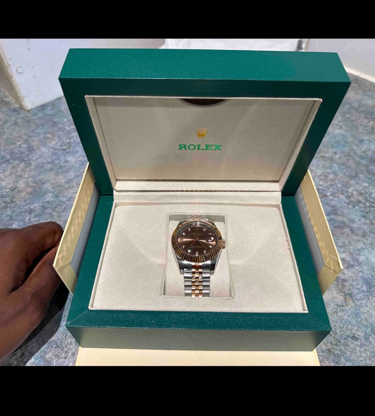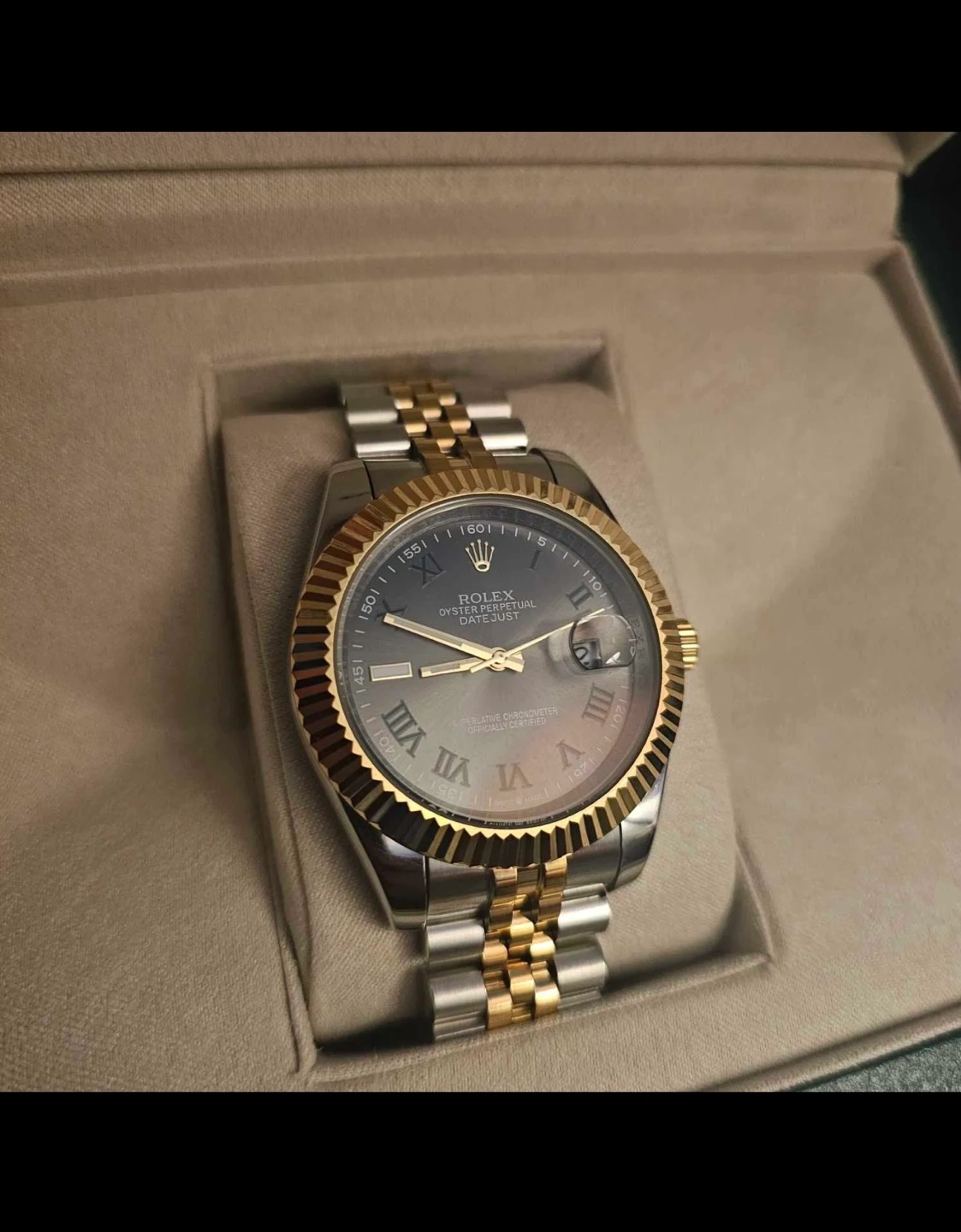 Beautiful Rolex Datejust watch. Two-tone band. Comes in original box. Looks great. Got different styles colors and sizes AAA quality sapphire, anti scratch glass watch stainless steal and water proof no more then 30meter under water