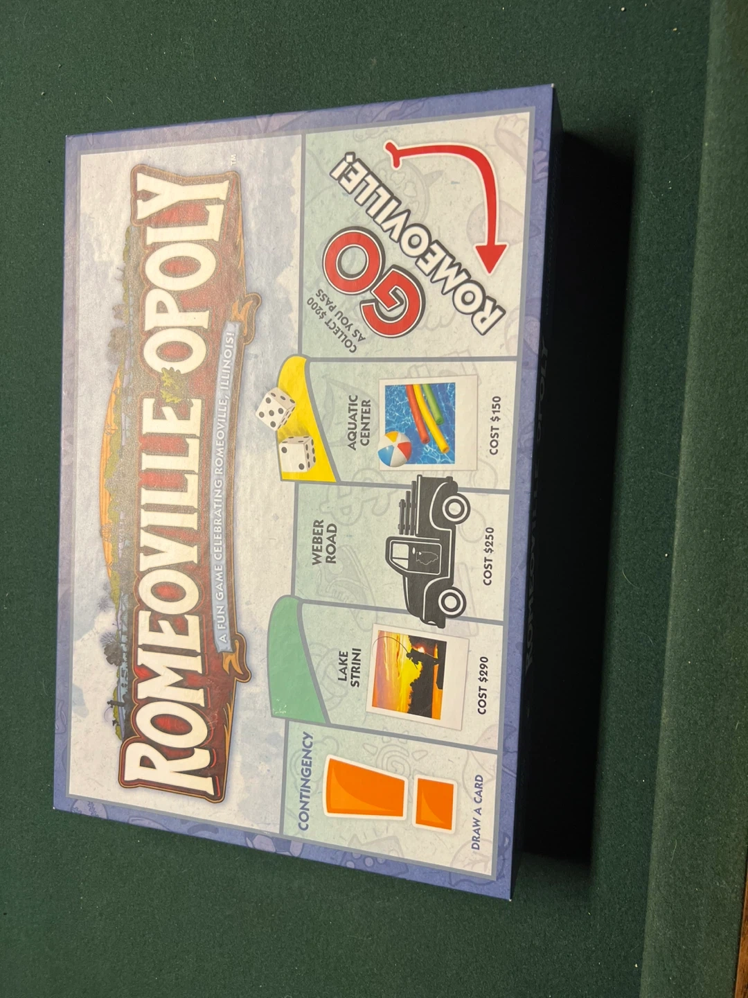 Selling a gently used Romeoville-opoly board game! It's a fun game celebrating Romeoville, Illinois. Great for family game night!