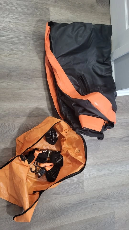 Cargo Bag Size 53”L x 40“W x 17”H. Bag Capacity 20 Cu. ft. Made from heavy-duty, abrasion-resistant vinyl. 100% waterproof. Secured with a strong zipper and protective flap. Easy attachment with included straps and hooks, no side rails needed.