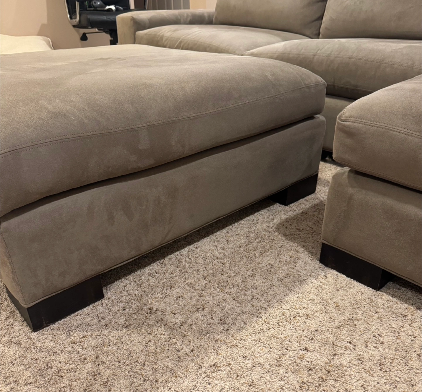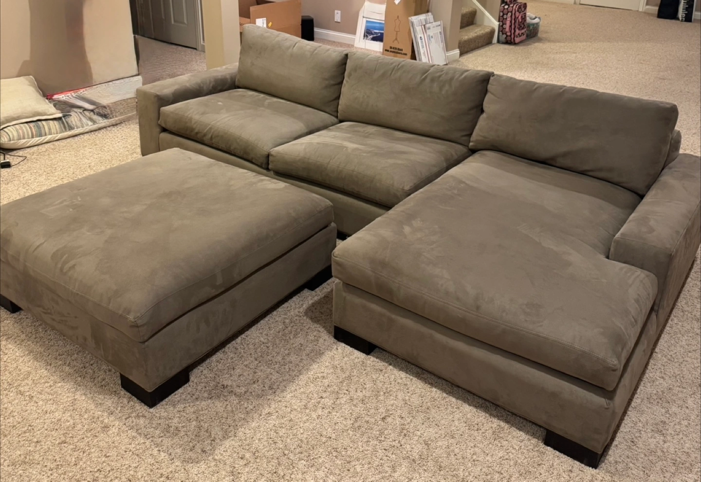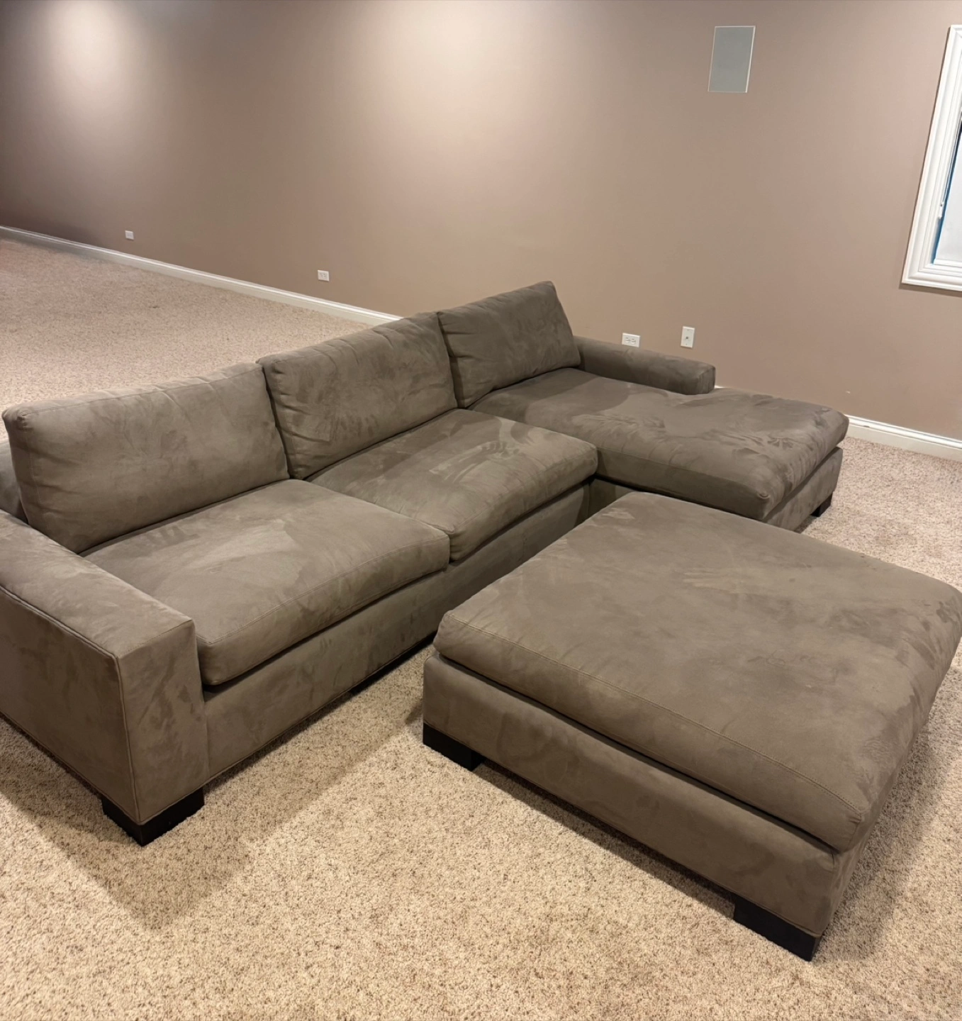 34Selling the super comfy Townsend collection sectional sofa with an ottoman. From Room & Board. It has Suede fabric in a taupe color. Great condition. From Room and Board. Original price was $4,400. It’s been in my basement, so it wasn’t used that much. Great for a living room, home theater, or basement! Just selling because we are moving. Pick up in Burr Ridge.
