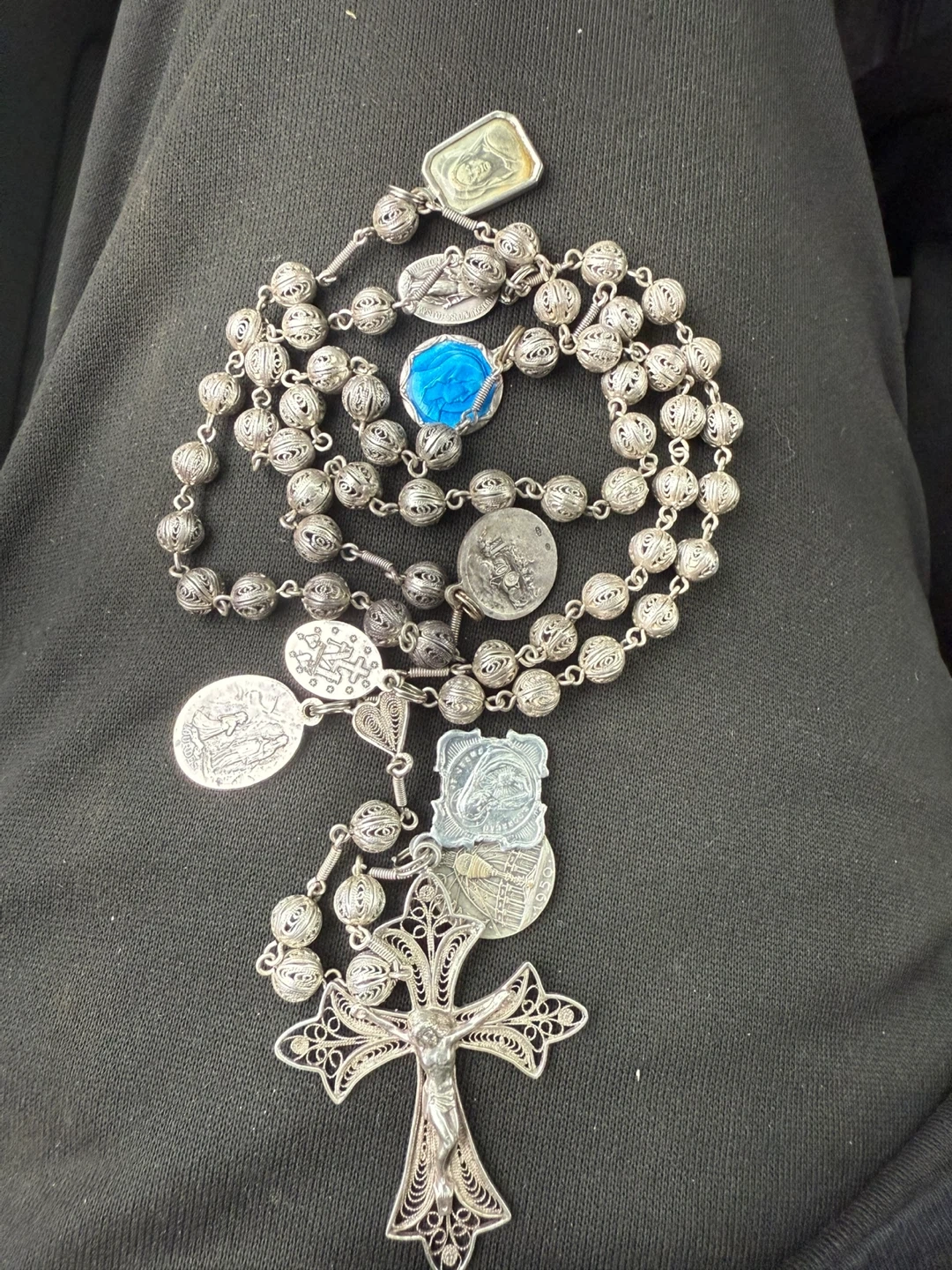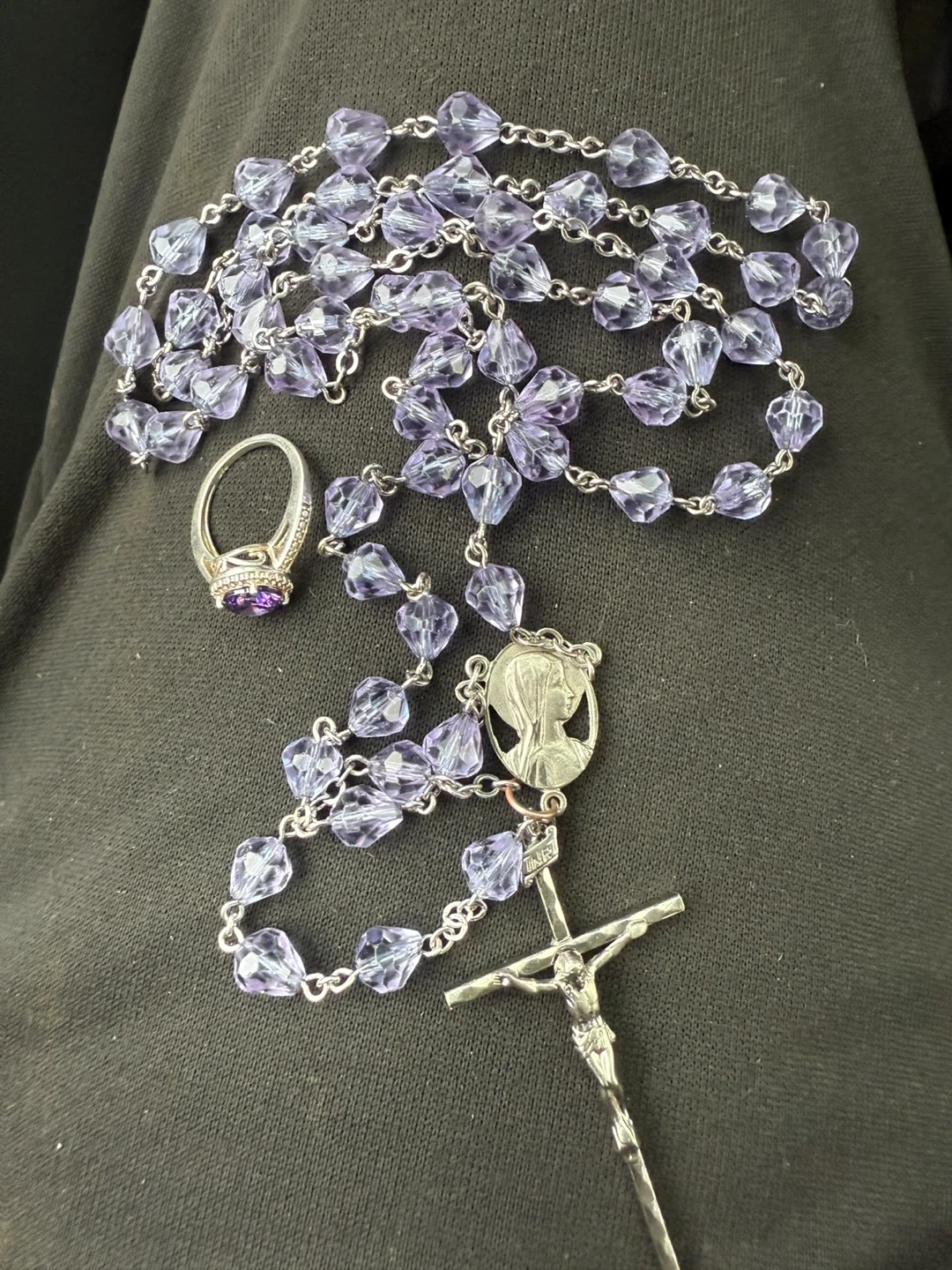 Selling a collection of rosaries in various styles and colors. Includes beaded and metal designs. Perfect for prayer or as a decorative piece! Each 15$