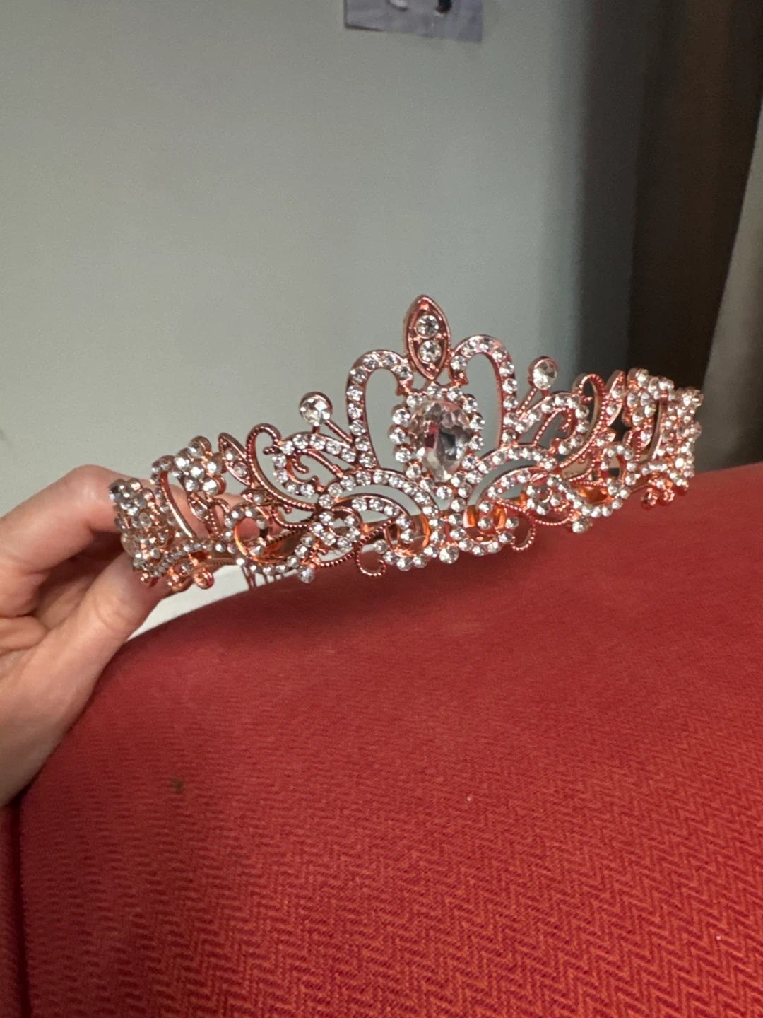 Selling a beautiful rose gold tiara with rhinestone detailing! It's in great condition and would be perfect for a special occasion or just to add a little sparkle to your day