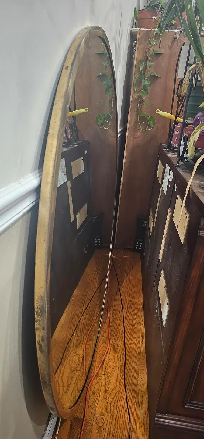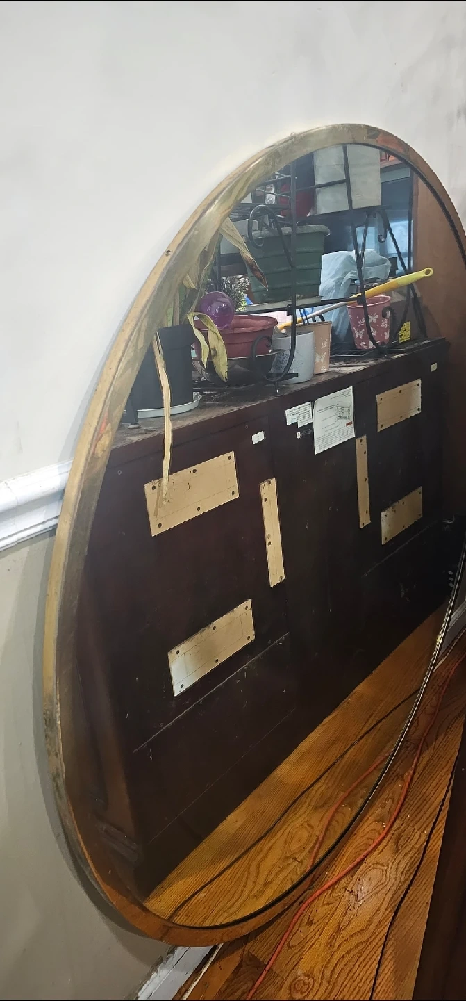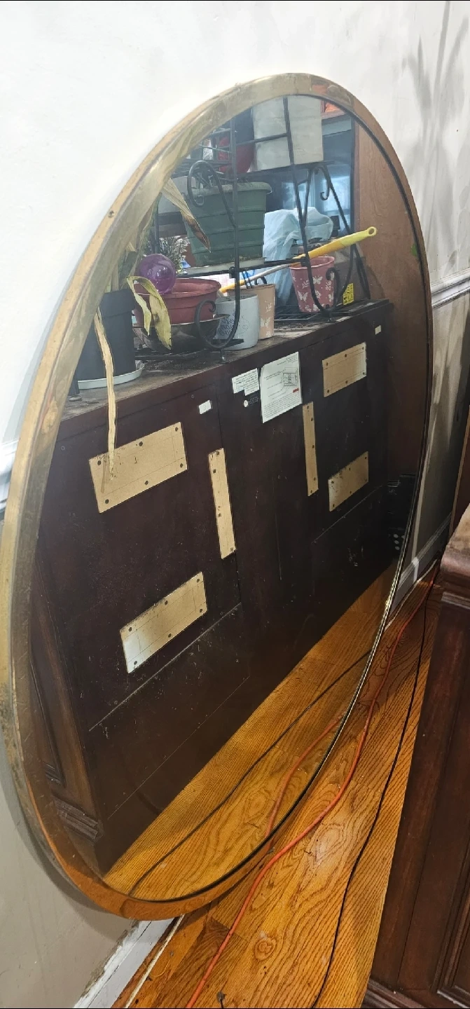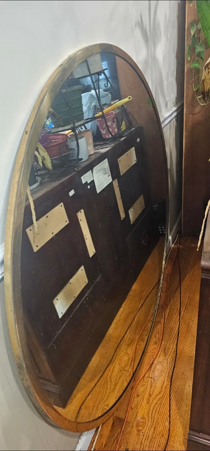 60Selling an round mirror with a gold frame. The mirror is in good condition and ready to add some style to your home!