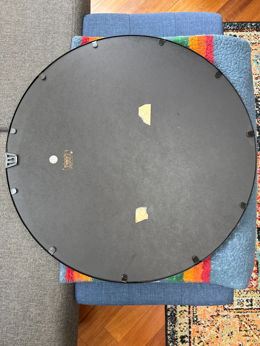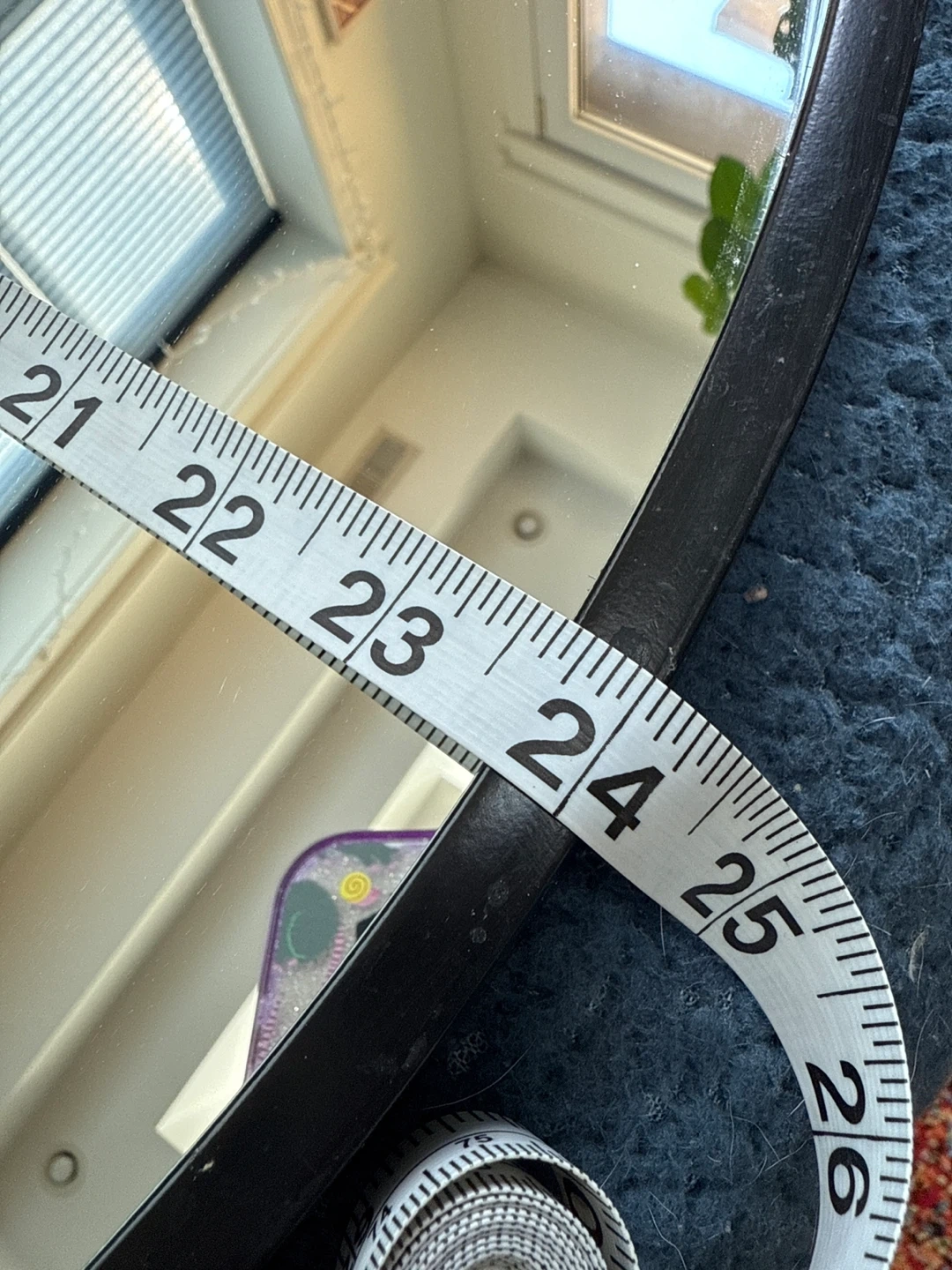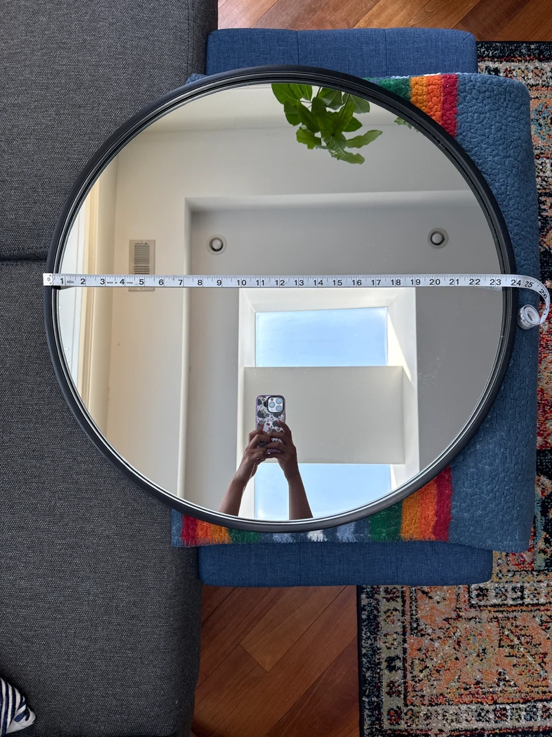 73Selling a heavy-weight round mirror that's in great condition! It measures approximately 24 inches in diameter. It's a simple and stylish piece that would look great in any room.