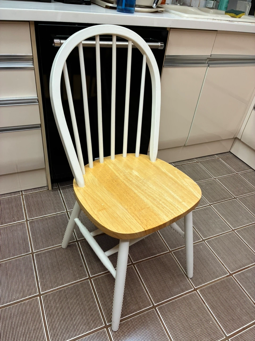 19Selling a round wooden dining table with four matching chairs. The table has a light wood top and white legs. The chairs have a similar design with light wood seats and white backs and legs. Perfect for kitchen or dining area.