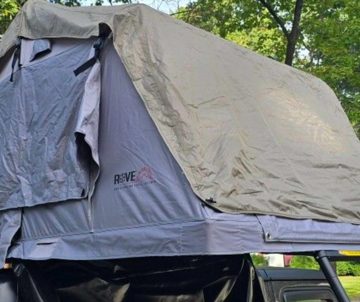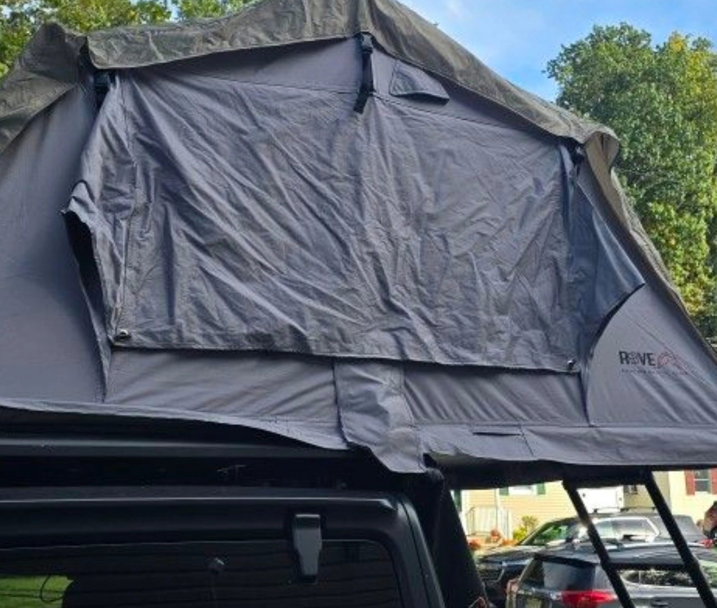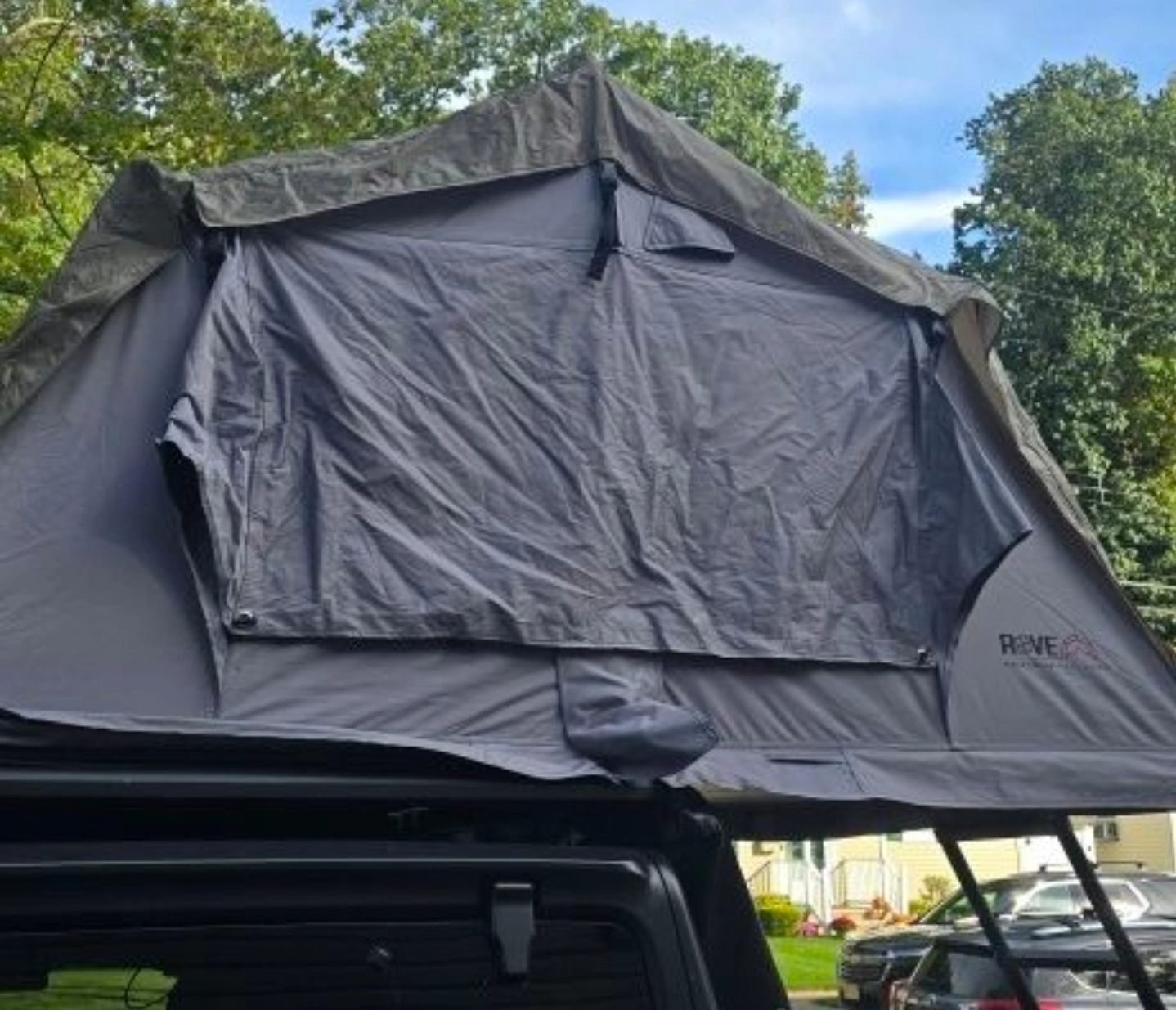 Selling a ROVE rooftop tent! It's in great condition and ready for your next adventure. It includes a ladder for easy access. Used but minor scratches.