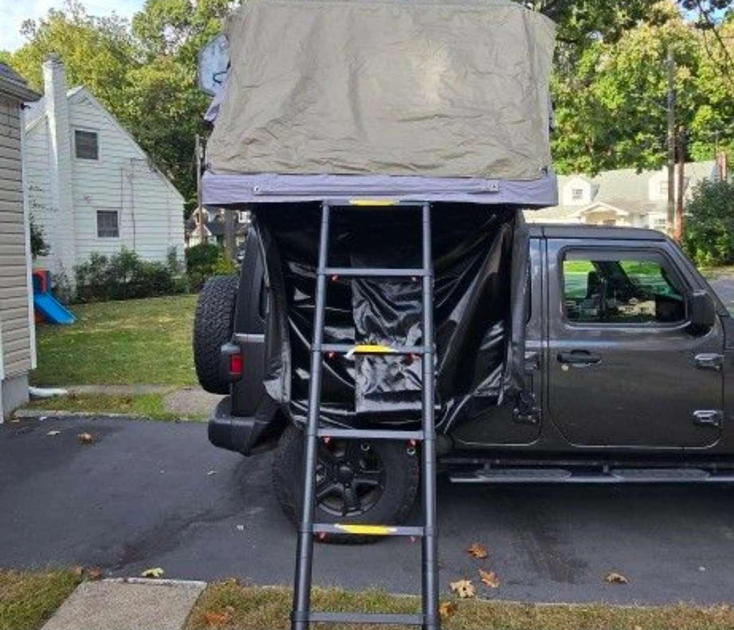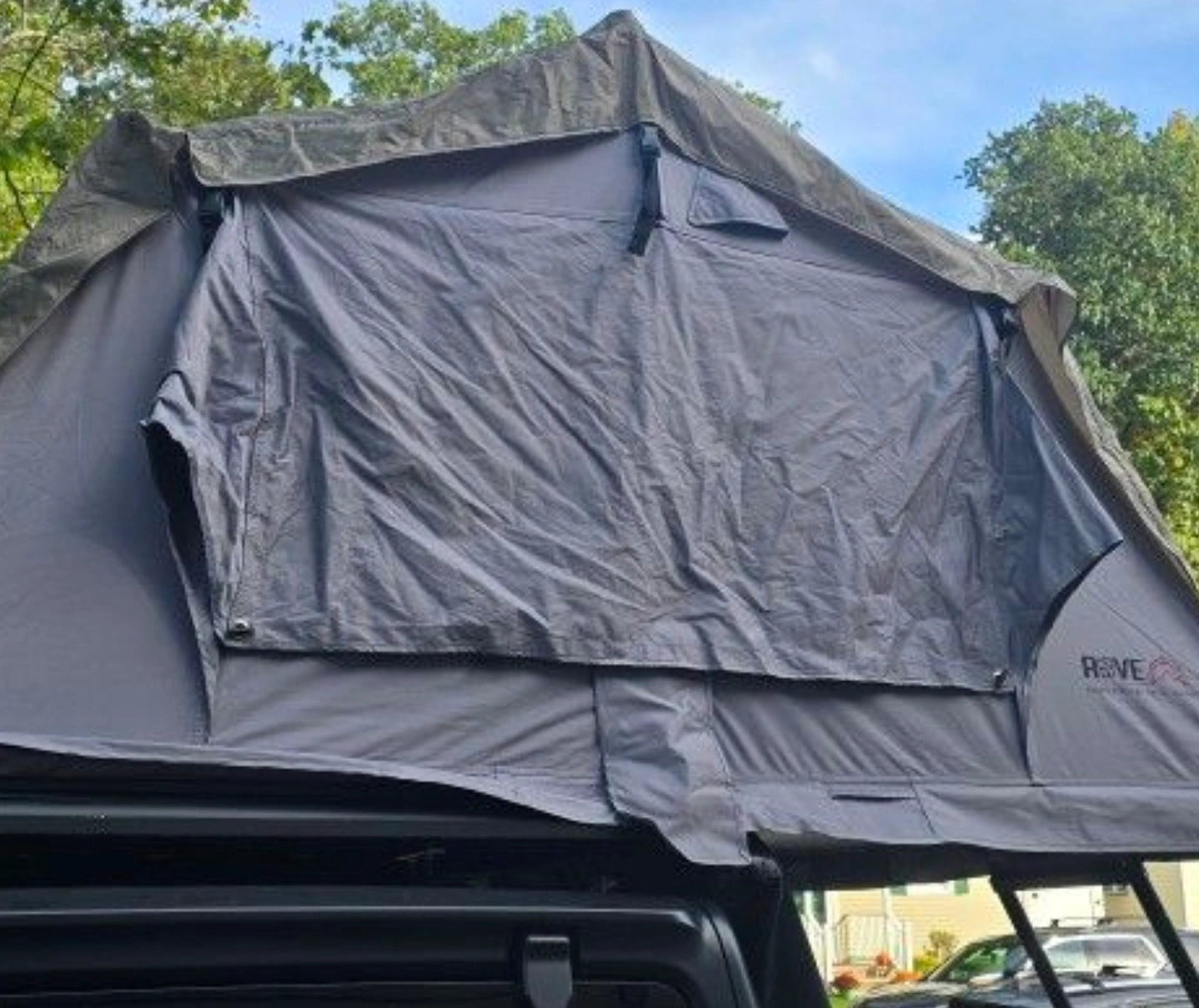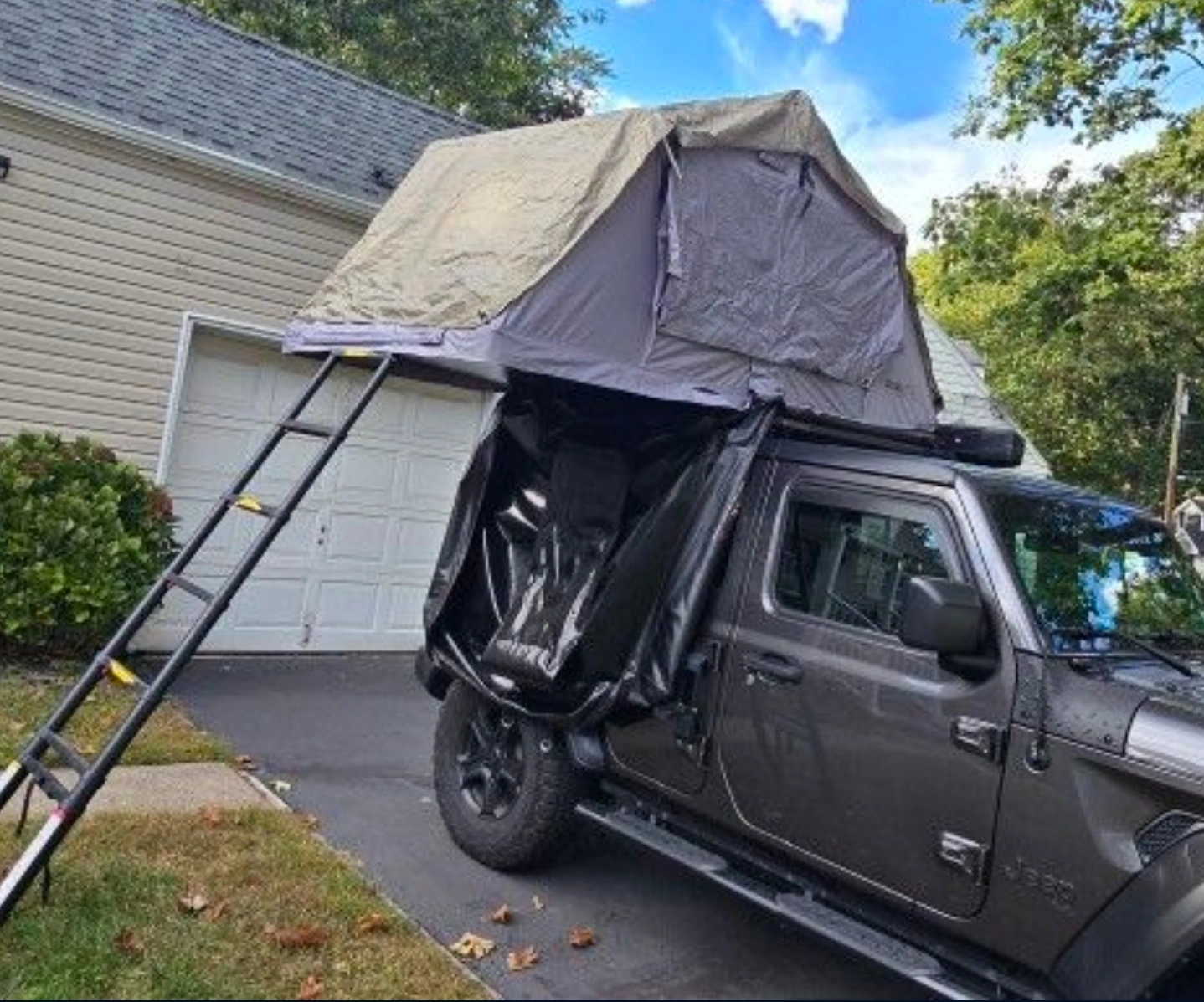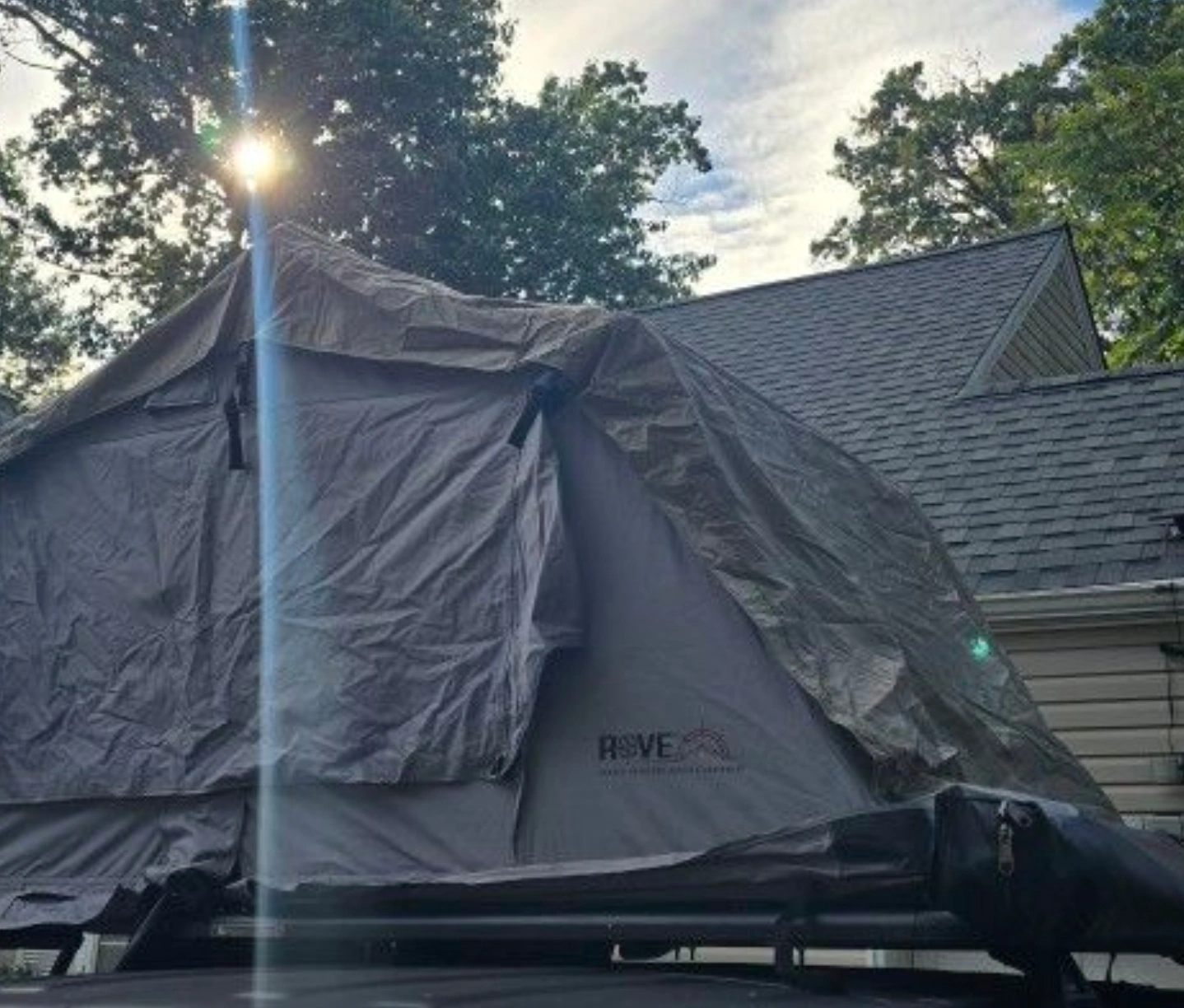 Selling a ROVE rooftop tent! It's in great condition and ready for your next adventure. It includes a ladder for easy access. Used but minor scratches.