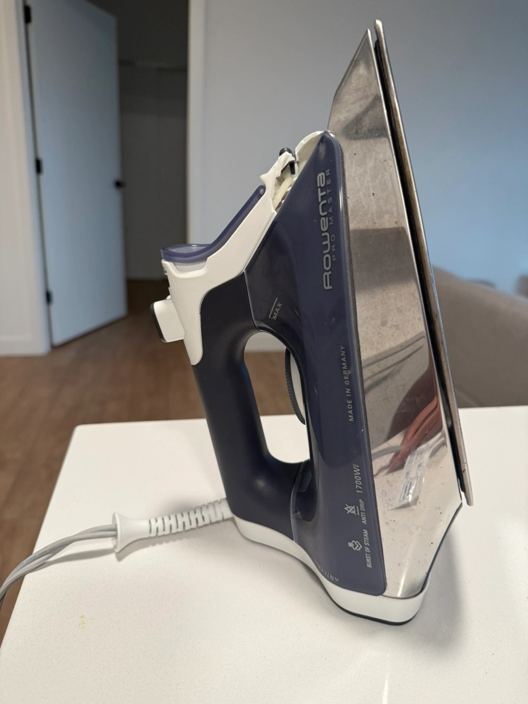 Selling a Rowenta Pro Master iron. It's in good working condition and ready to help you get those wrinkles out! This iron is known for its powerful steam capabilities, making ironing easier and more efficient. Cracked near the steam went but switches on and works fine.