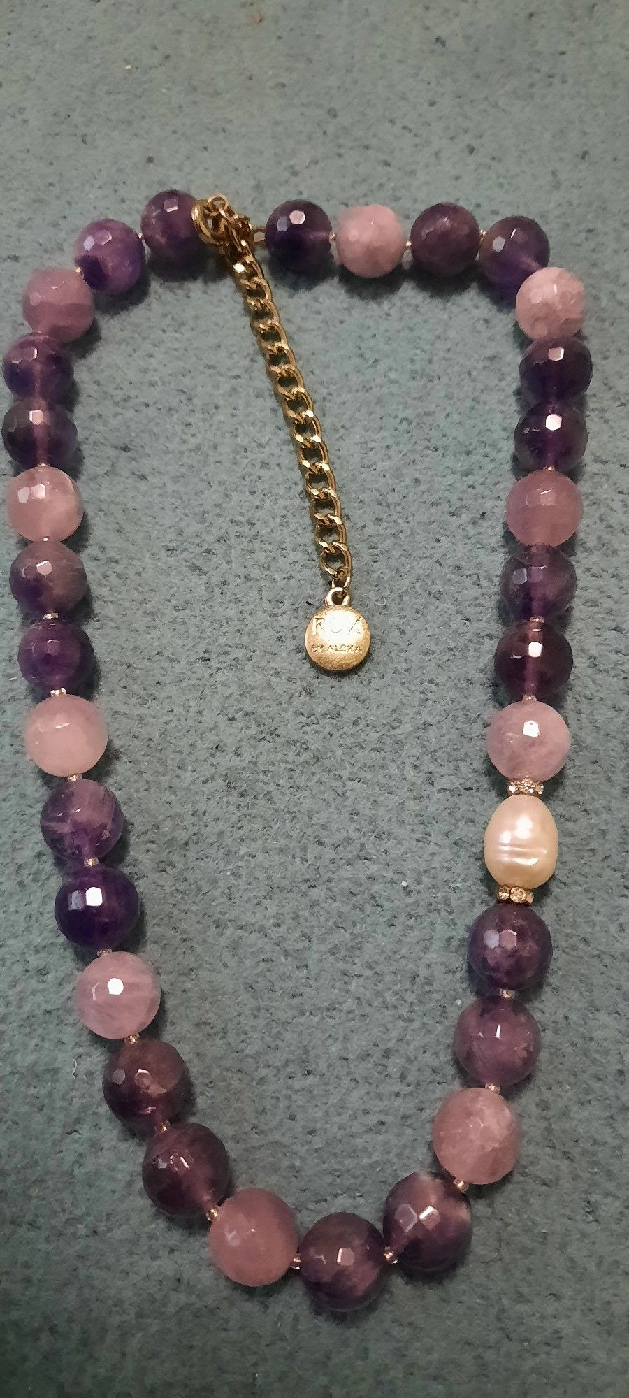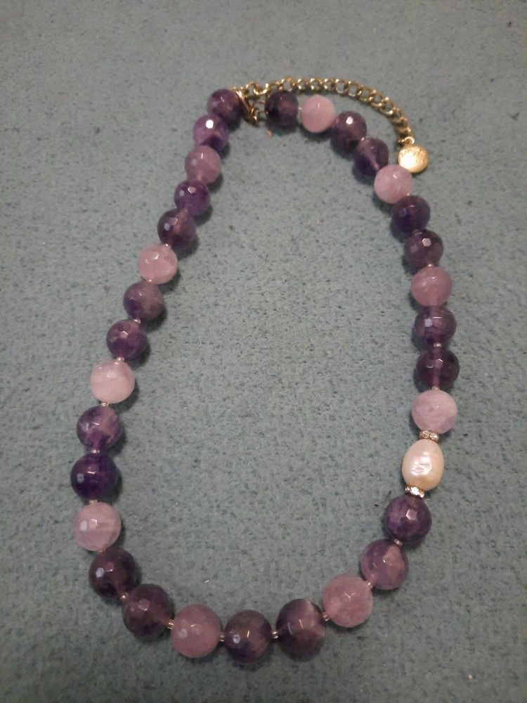 15Beautiful Amythest and Pearl Necklace Rox by Alexa. Compliments any attire. Style: Beaded Brand: Rox by Alexa