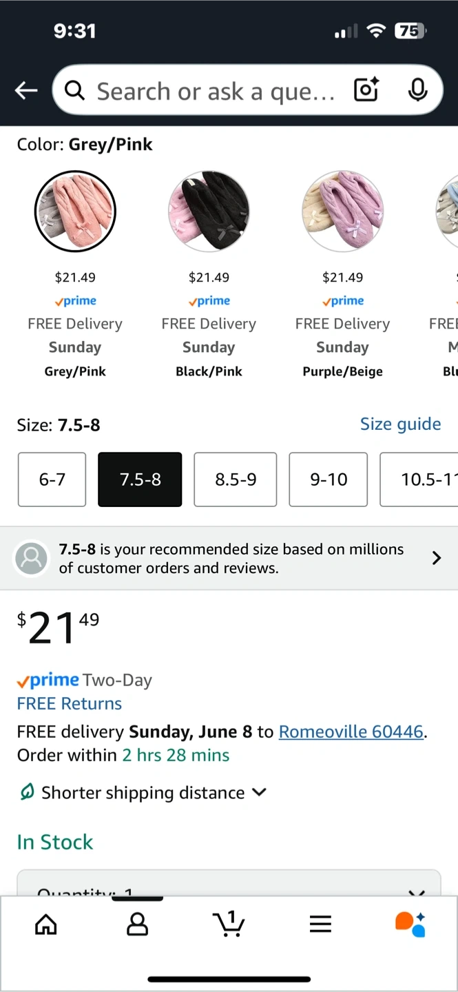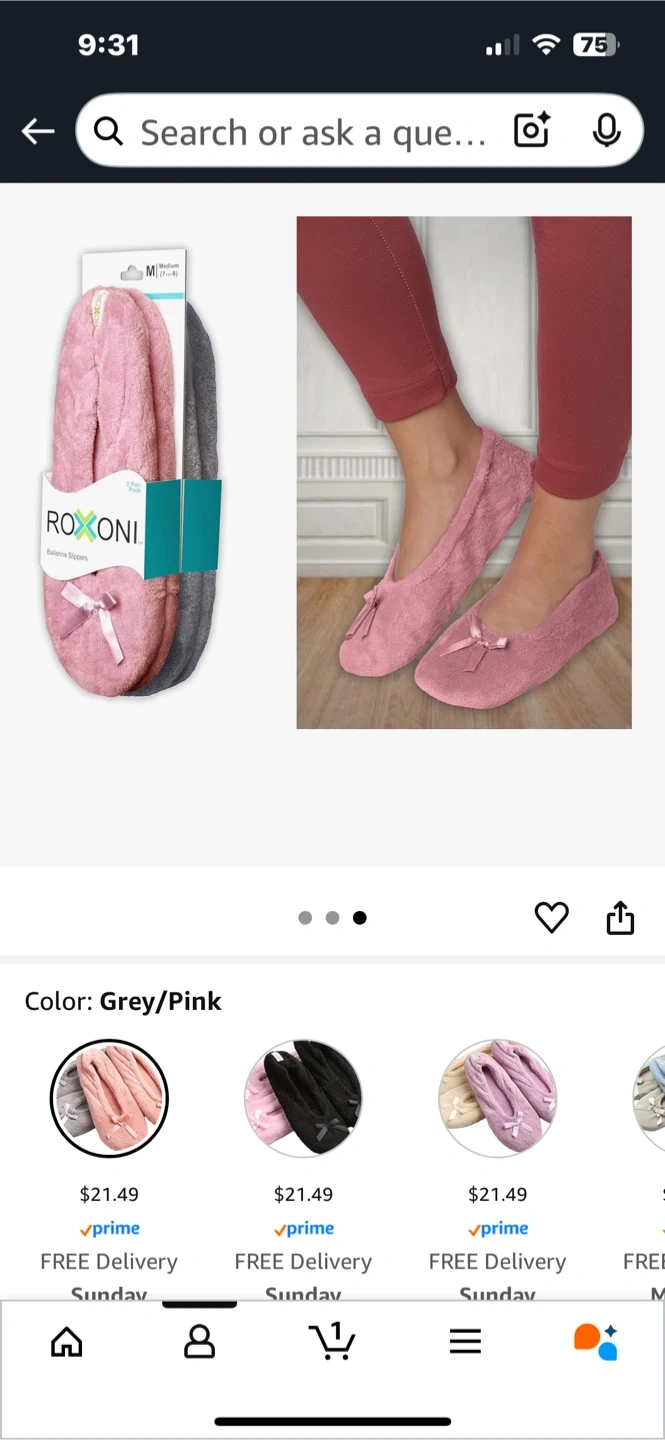 These Roxoni Ballerina Slippers are super comfy for padding around the house! They come in a cute grey/pink color combo and are size 7.5-8. Originally priced at $21.49, these slippers are a cozy treat for your feet!